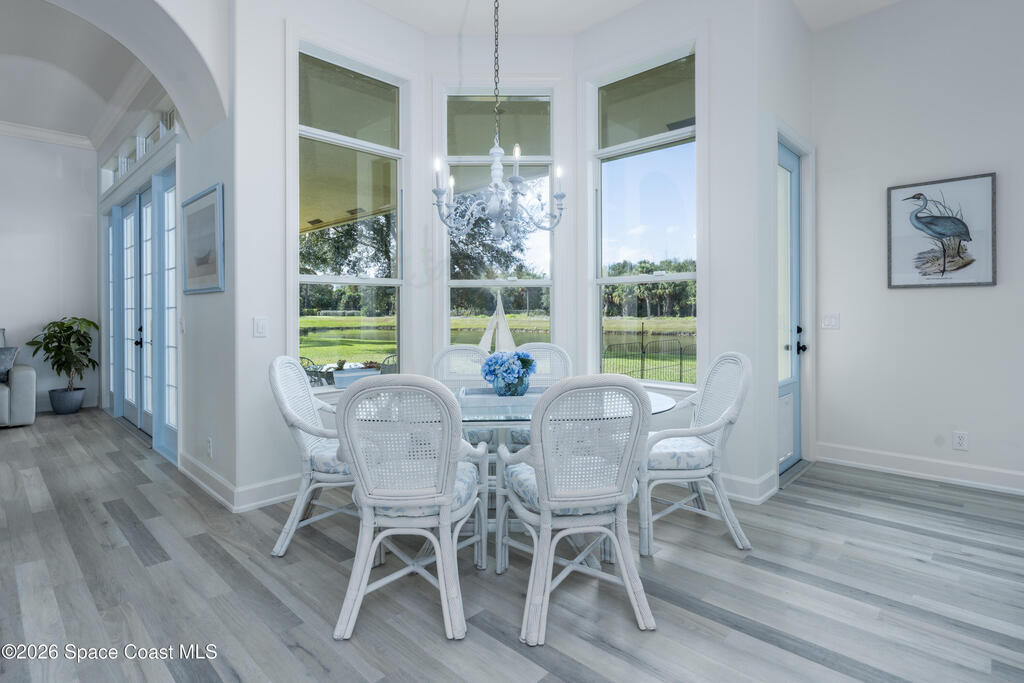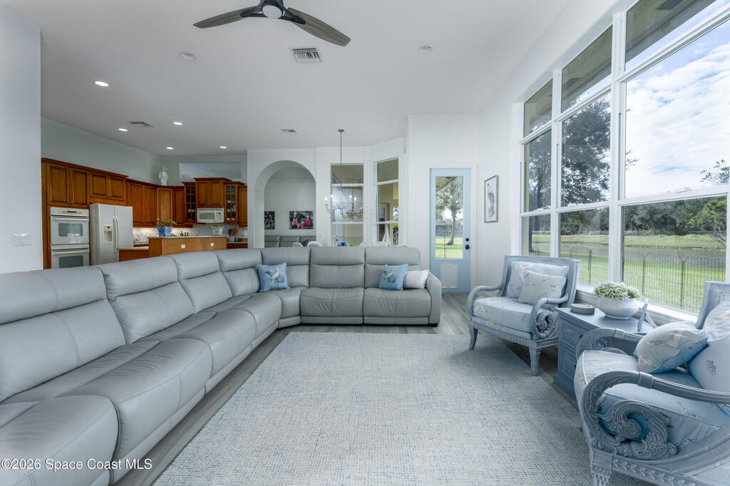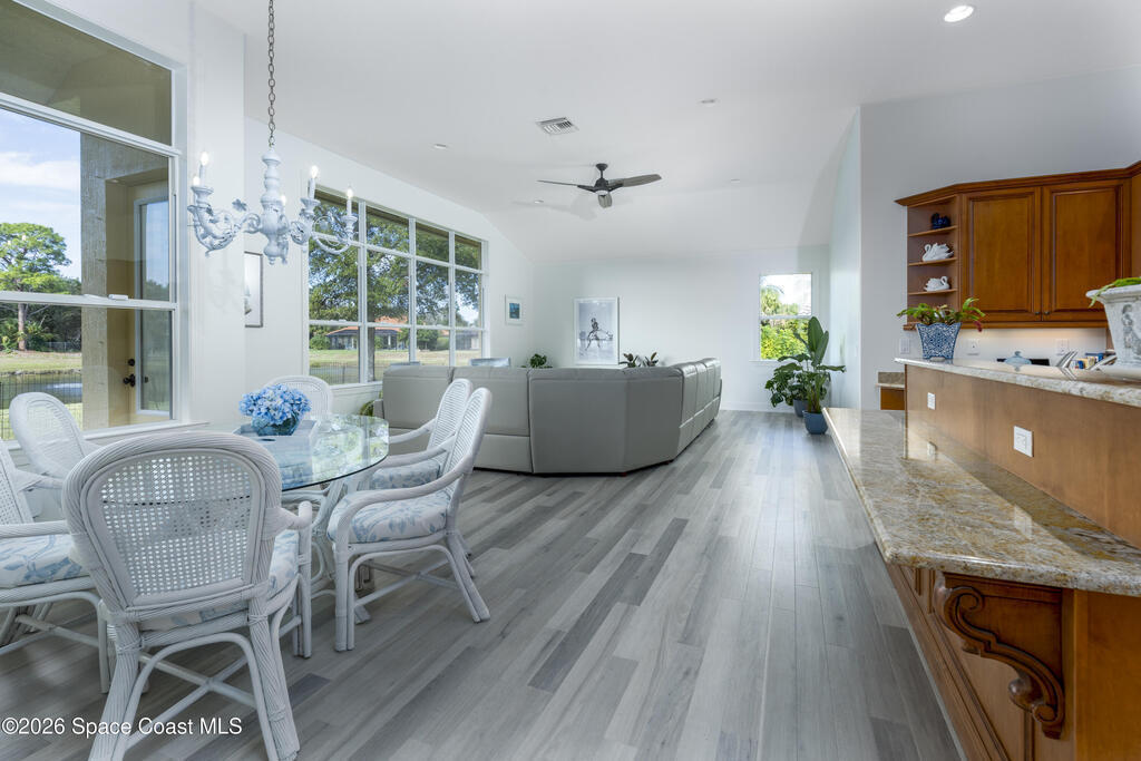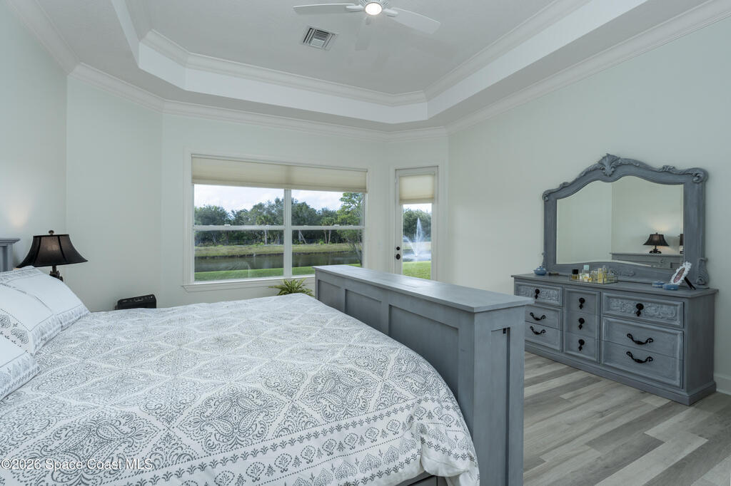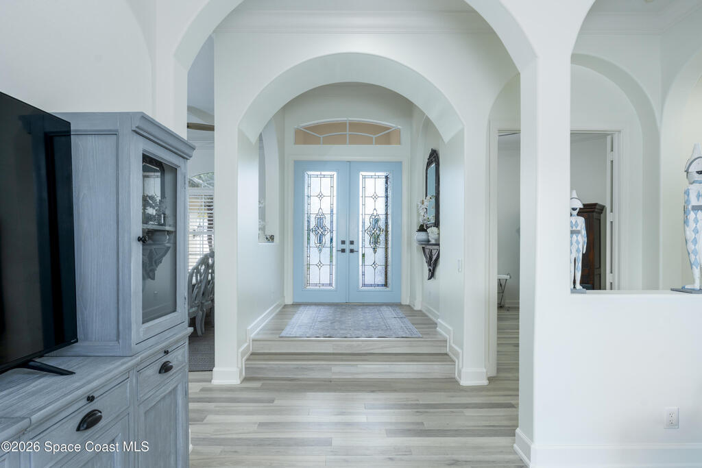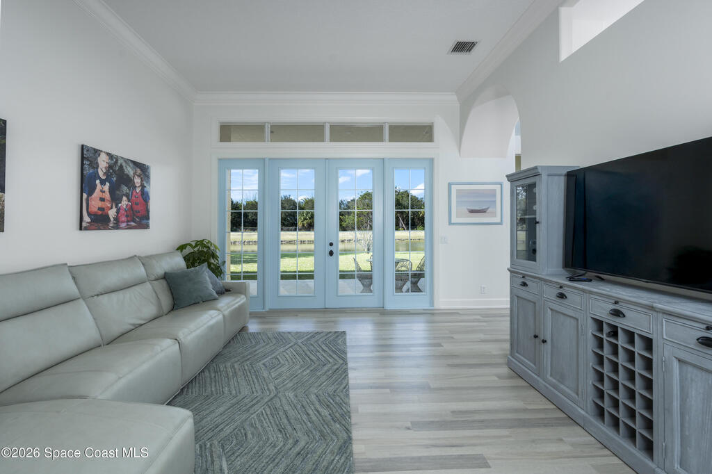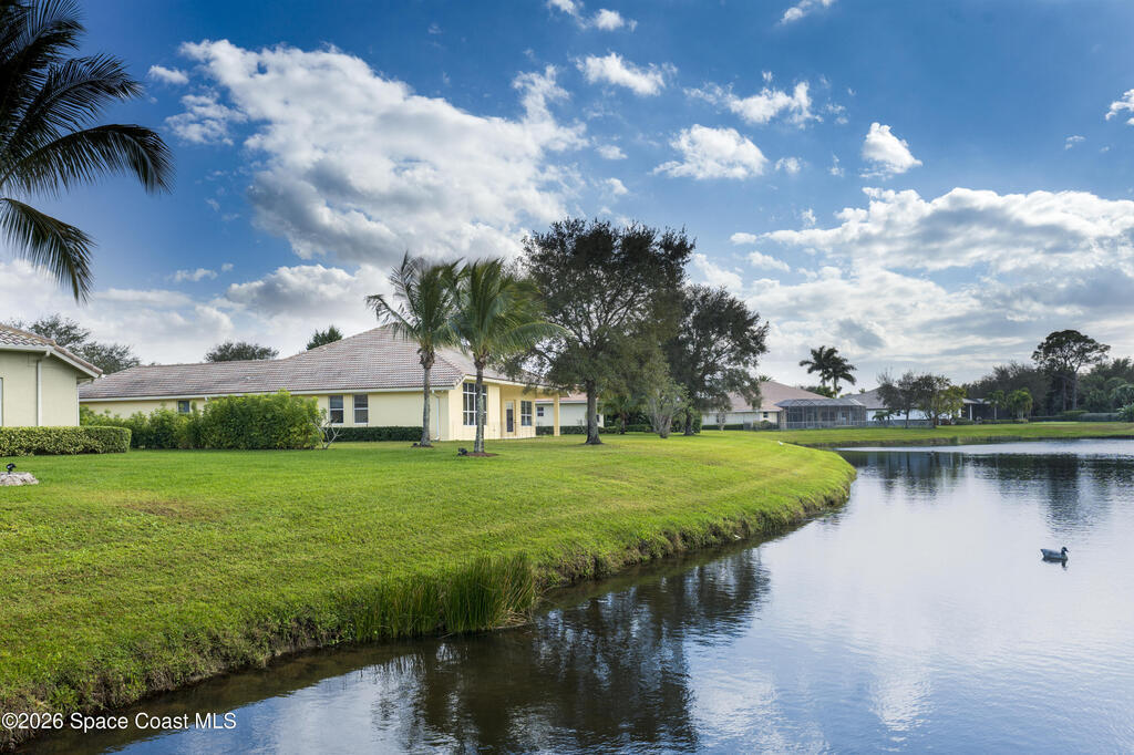 Timeless elegance meets Mediterranean-inspired design in this refined waterfront estate, ideally set on an oversized .39-acre fountained lot in the gated community of Stoney Brook Farm in Vero Beach. Offering over 3,100 square feet under air and nearly 4,200 square feet total, this thoughtfully designed residence features 3 bedrooms, 3.5 baths, a den/office, and an expansive 3-car garage. A split floor plan provides privacy, with a grand primary suite showcasing tranquil water views, two walk-in closets, and dual ensuite baths. Wall-to-wall windows, volume ceilings, crown molding, and elegant architectural details fill the home with natural light. Recent renovations include premium Karndean Art Select LVT flooring (no carpet), fresh interior paint, custom closet systems in all bedrooms, new ceiling fans, recessed LED lighting, oversized window moldings, and a beautifully remodeled powder room. Community amenities include a clubhouse, fitness center, tennis, and resort-style pool.