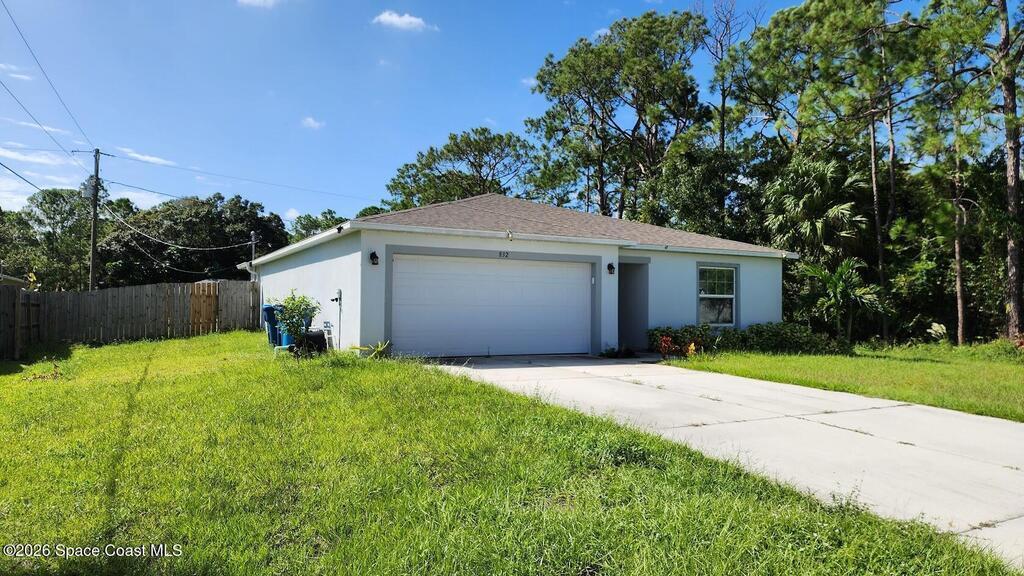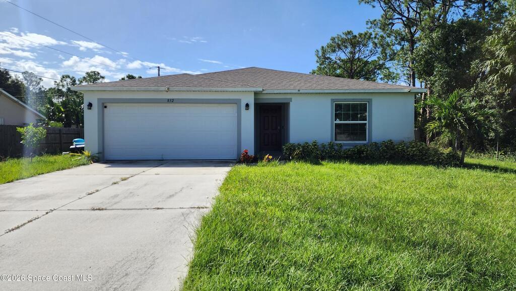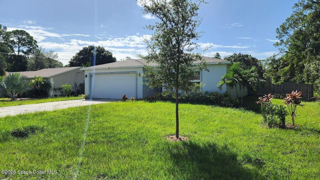 Short Sale. Welcome to this charming 3-bedroom, 2-bathroom home in the heart of Palm Bay! Built in 2022, this move-in-ready property offers the perfect blend of comfort and convenience. Step inside to an OPEN-CONCEPT layout featuring IMPACT WINDOWS, abundant natural light, and a cozy living room that flows seamlessly into the kitchen and dining area. The modern kitchen includes an ISLAND, BREAKFAST NOOK overlooking the FULLY FENCED backyard, and classic black appliances--ideal for both entertaining and everyday living. This home also features an Ecoverse Water Purification System with Reverse Osmosis, a multi-stage well water treatment system, for added peace of mind. With a newer roof and A/C system from 2022, you'll enjoy the low-maintenance benefits of modern construction. Conveniently located on a quiet street close to schools, parks, and shopping, this home offers a relaxed Florida lifestyle with all the essentials nearby. Schedule your showing today!