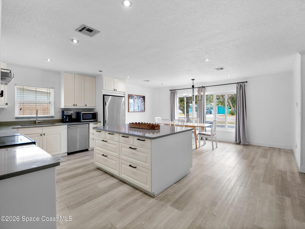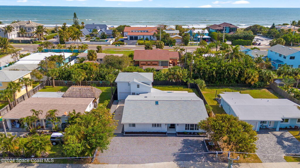 The perfect opportunity for beachside living less than 1 mile to Downtown Cocoa Beach and a short stroll to the ocean. This pool home features a 5 bedroom 2 bathroom main house with a 1 bedroom 1 bathroom, 700 sq ft guest apartment with full kitchen over the garage. Live in the main house and rent the apartment or keep the current licensed short term rental going. Recent updates and standout finishes include a newer roof, HVAC, stone counters, new flooring throughout, stainless appliances, huge kitchen island, a shiplap accent wall, crown molding, a resurfaced pool, fencing, sod, the list goes on. In addition to the driveway up to the garage there is ample graveled parking in front of the home. Minutes to area shops and restaurants, Cocoa Beach is a dream destination and perfect town for investment. Currently a top 10 rated surf town in the world, you'll never want to leave.