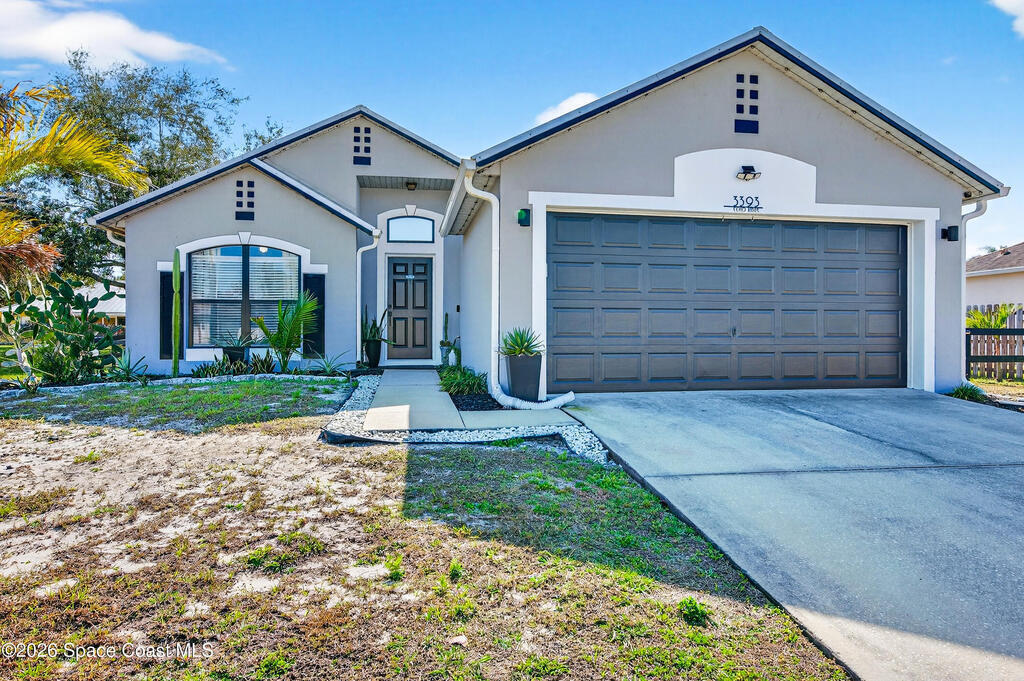 You will LOVE this 3 Bedroom, 2 Bath home in popular Trail's End Subdivision! Move-in Ready! Property has a fully fenced back and side yards. Open concept, with high ceilings, give the home a large welcoming feel. Huge screened porch provides great outdoor space! Property has Storm Shutters and New METAL ROOF installed in 2021, HVAC inside and out 2021, Gutters with French Drains from Downspouts! Home even has Govee exterior soffit lighting! Convenient to I-95, 528 and US1. Short trip to Orlando Theme Parks, Beaches and Port Canaveral!