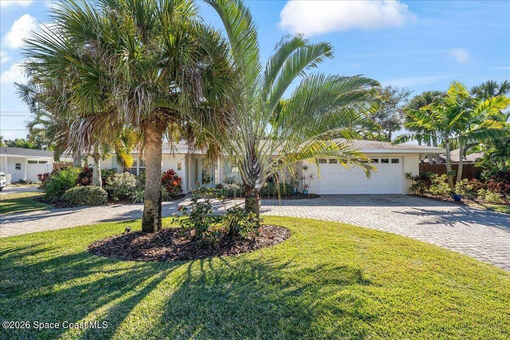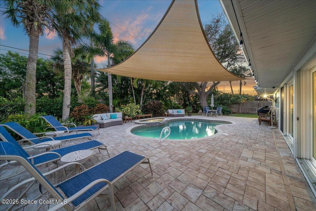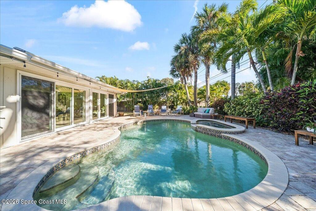 Ideally located in Brevard County's most sought after neighborhood, SOFA (south of Fifth Ave), this home is centered around a true tropical dream. The updated kitchen features solid wood cabinetry, granite countertops, stainless steel appliances including a gas range. From the moment you enter, a striking wall of impact glass sliders draws your eye to the outdoor oasis, showcasing the salt water heated pool, spa, and lush landscaping. Inside you'll enjoy a split floorplan where the primary and guest bathrooms have custom updates. The primary bedroom and ensuite bathroom have impact windows bringing in lots of natural light. The rich oak hardwood floors surround a cozy fireplace, and a dining room that flows seamlessly into the family room for everyday living and entertaining. Walk or bike to A rated schools, the beach, river or restaurants and shops on 5th Ave. Two car garage and all PVC pipes round out this dream Florida home.