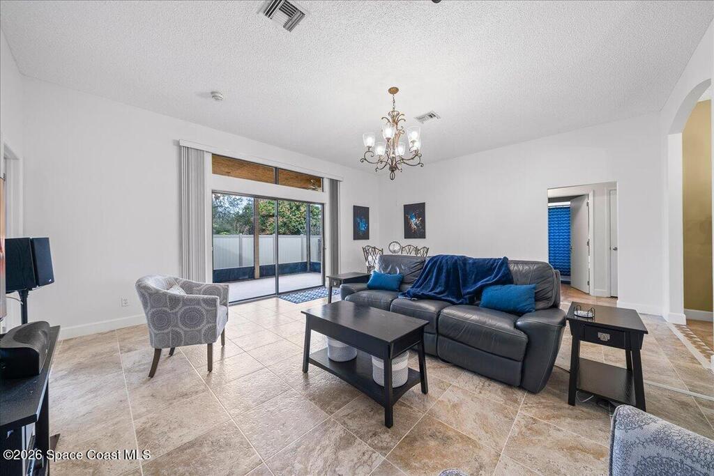 Set on a freshly sodded corner lot in the heart of Melbourne in Wickham Forest, this inviting home offers easy living with thoughtful updates throughout. Vaulted ceilings and natural light create an airy and welcoming feel from the moment you step inside, drawing your eye to the screened in patio and private, fenced backyard.The open flow between the great room and the eat-in kitchen makes everyday life and entertaining effortless. Retreat to the spacious primary suite where large windows, private patio access and generous walk in closet create a true sanctuary. The ensuite bath is designed for unwinding featuring dual vanities, soaking tub and a separate shower.Two additional bedrooms are on the other side of the family room,ideal for guests or a home office.A large laundry room off the kitchen allows for pantry storage and leads to the two car garage for convenience.A 2023 roof, accordion shutters new irrigation, paint,and tile throughout add peace of mind and durability.