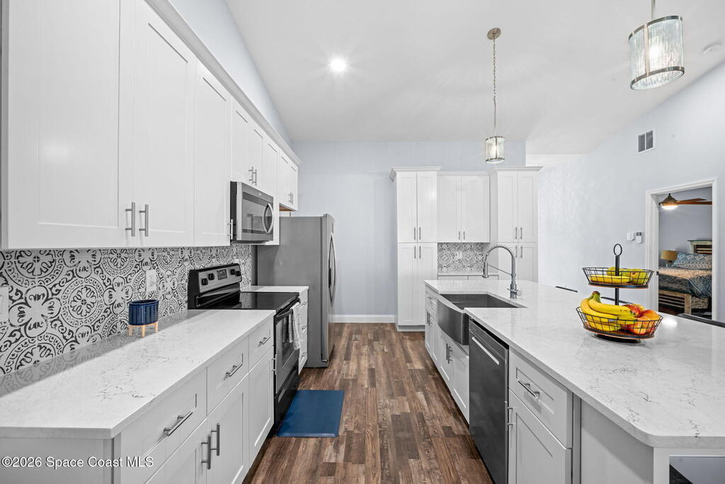 72 Hour Kickout Clause in Effect. Located in the highly desirable community of Laurel Run at Meadowridge, this BEAUTIFULLY upgraded and polished home features a thoughtfully added 4th bedroom, offering flexible space for guests, a home office, or growing families! Luxury life-proof vinyl flooring flows throughout, with ceramic tile in each bathroom. The fully remodeled kitchen is an absolute SHOWSTOPPER with quartz countertops and a stunning 10 foot island, perfect for both entertaining and everyday living! The primary suite showcases modern, spa-inspired updates, including dual vanities and a re-imagined and oversized step-in shower and soaking tub. Custom, designer closet systems have also been installed to enhance both style and functionality! Step outside to your private retreat featuring a fully screened, HEATED pool and back patio for year round enjoyment!