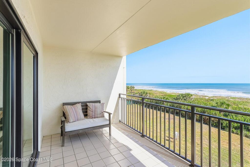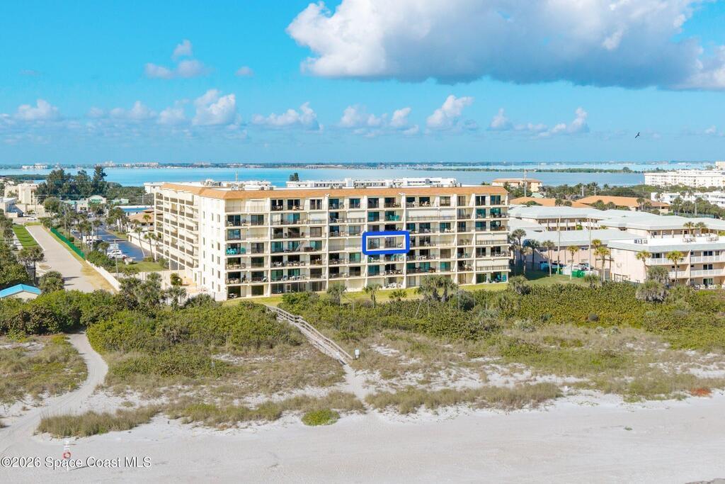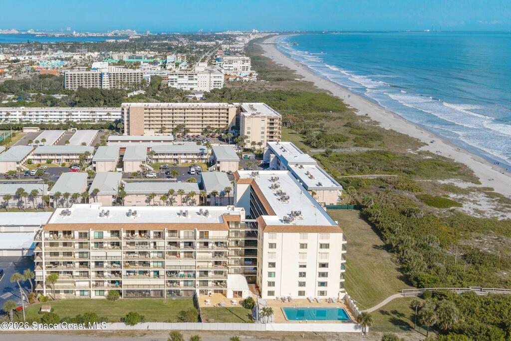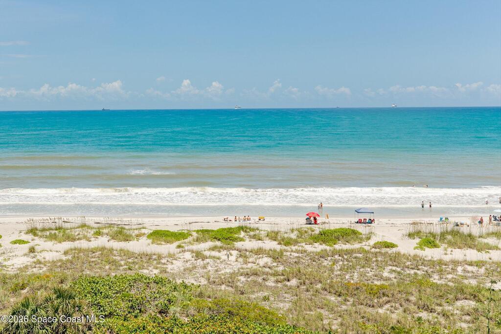 Beautiful Direct Oceanfront Condo with remodeled kitchen and bathrooms. Spectacular DIRECT OCEAN VIEWS from this 4th floor updated condo. The bright and open kitchen features soft close cabinetry, beautiful counter tops, large basin sink w/ disposal, and updated stainless steel appliances with a slide in range and refrigerator with in-door water/ice dispenser. Solid surface flooring with large tile and wood look vinyl. Oceanfront primary suite with ensuite bathroom and walk in closet. Guest bedroom has beautiful sunset views. The residence also features updated impact slider doors and windows. You can see the launch pads providing spectacular rocket launch viewing! Private, 1-car garage plus ample guest parking onsite. You are steps from restaurants and shops from this desirable community that features resort-style amenities including a heated pool, gas BBQ grill, tennis, pickleball, beach access, clubhouse, exercise room, sauna, and an onsite manager. Priced to sell! Click for more...