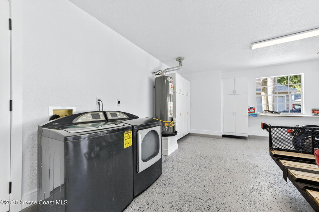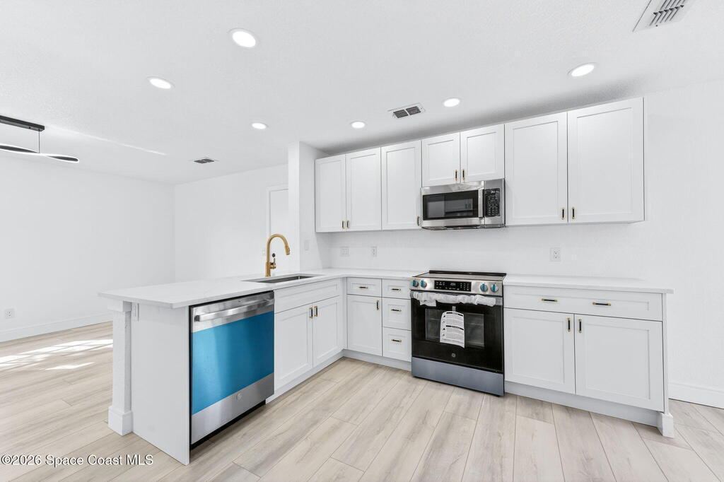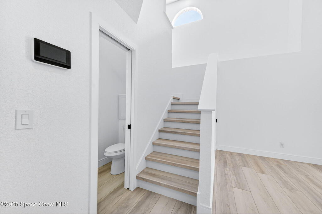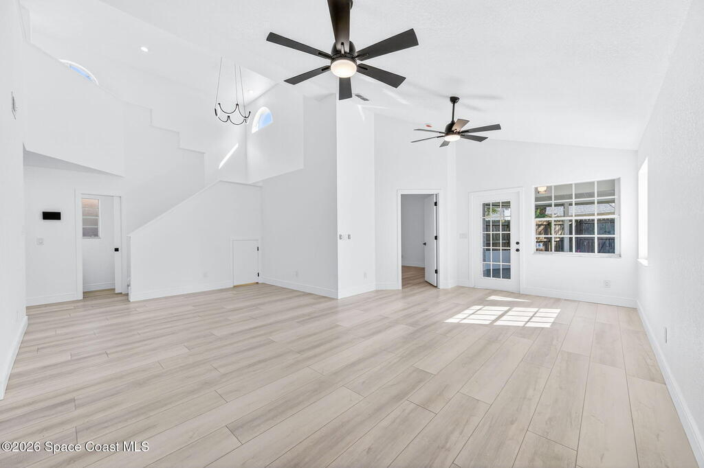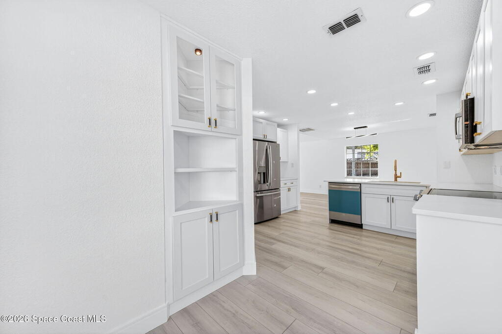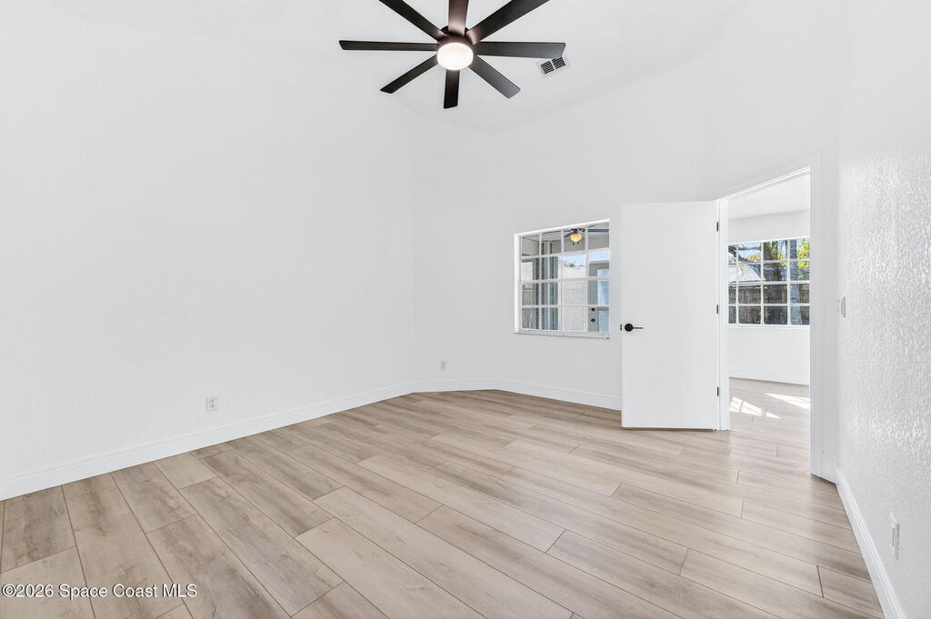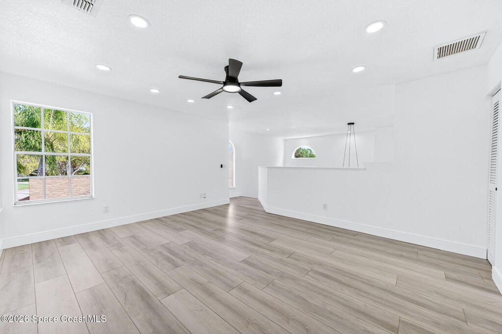 Beautifully renovated home in a central Melbourne location, offering modern finishes, soaring ceilings, and a functional floor plan. This move-in-ready property features a brand-new roof, luxury vinyl flooring throughout, and a completely updated kitchen with quartz countertops, new cabinetry, a pantry with pull-out shelving, stainless steel appliances, and stylish gold accents. The main level includes a spacious primary bedroom with a stunning en suite and large walk-in closet, an additional half bath, and a light-filled living area with high ceilings. Enjoy year-round indoor/outdoor living in the screened Florida room with removable vinyl windows. Upstairs, you'll find a large loft-style living space and two additional bedrooms, one with direct access to the bathroom. The epoxy-sealed two-car garage includes a full-size refrigerator and new washer and dryer. Conveniently located near shopping, dining, golf, and beautiful beaches.