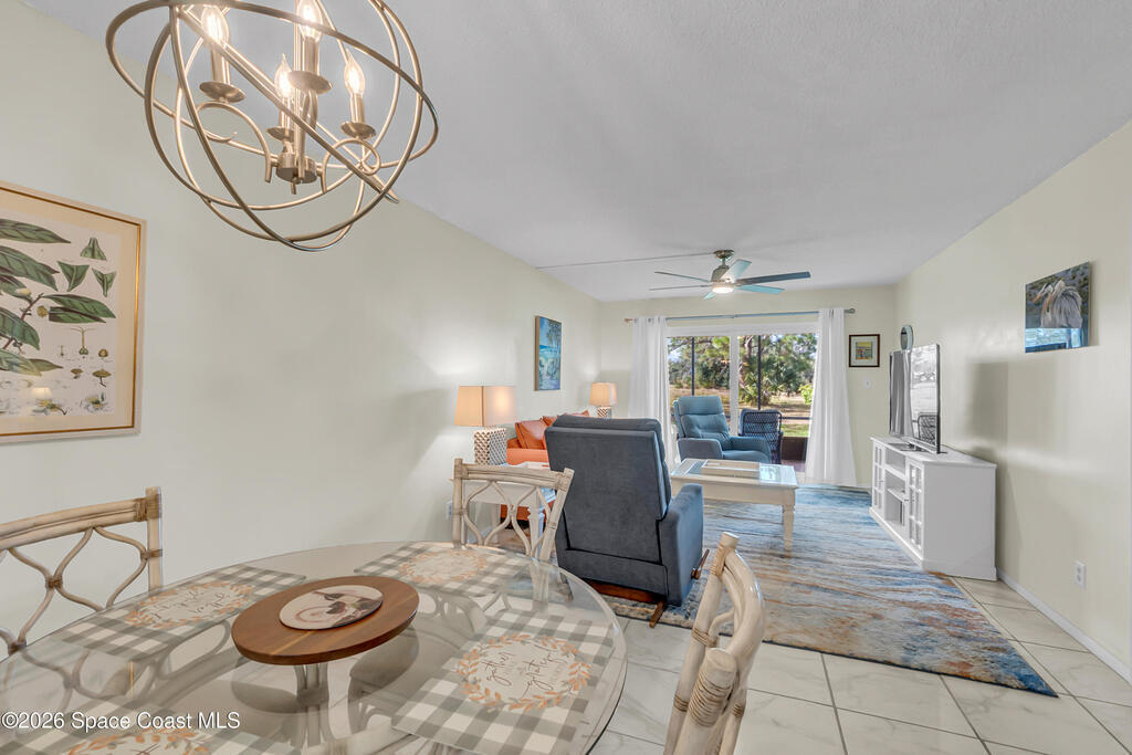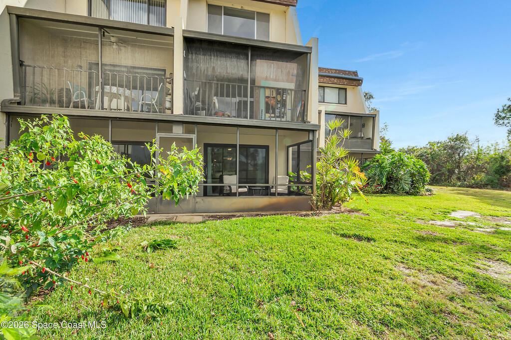 Welcome to this immaculate FIRST FLOOR, FULLY FURNUSHED condo offering 2 bedrooms, 1.5 baths, and 1,195 square feet of thoughtfully designed living space. Move-in-ready home is ideal for effortless Florida living or a perfect seasonal retreat.The bright, open layout flows seamlessly to a screened-in patio, where you can relax and enjoy peaceful privacy with open field views--no rear neighbors. Located in a well-maintained community with a pool, this condo offers both comfort and convenience. You're just minutes from grocery stores, shopping, and everyday essentials, making daily errands a breeze.Whether you're looking for a full-time residence, vacation getaway, or investment opportunity, this pristine condo checks every box--privacy, location, beaches, space launches and turn-key convenience.