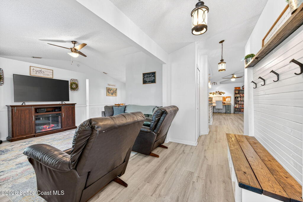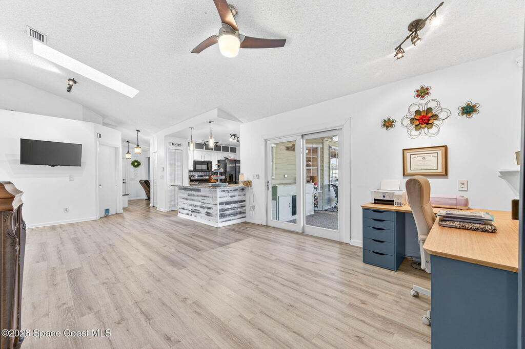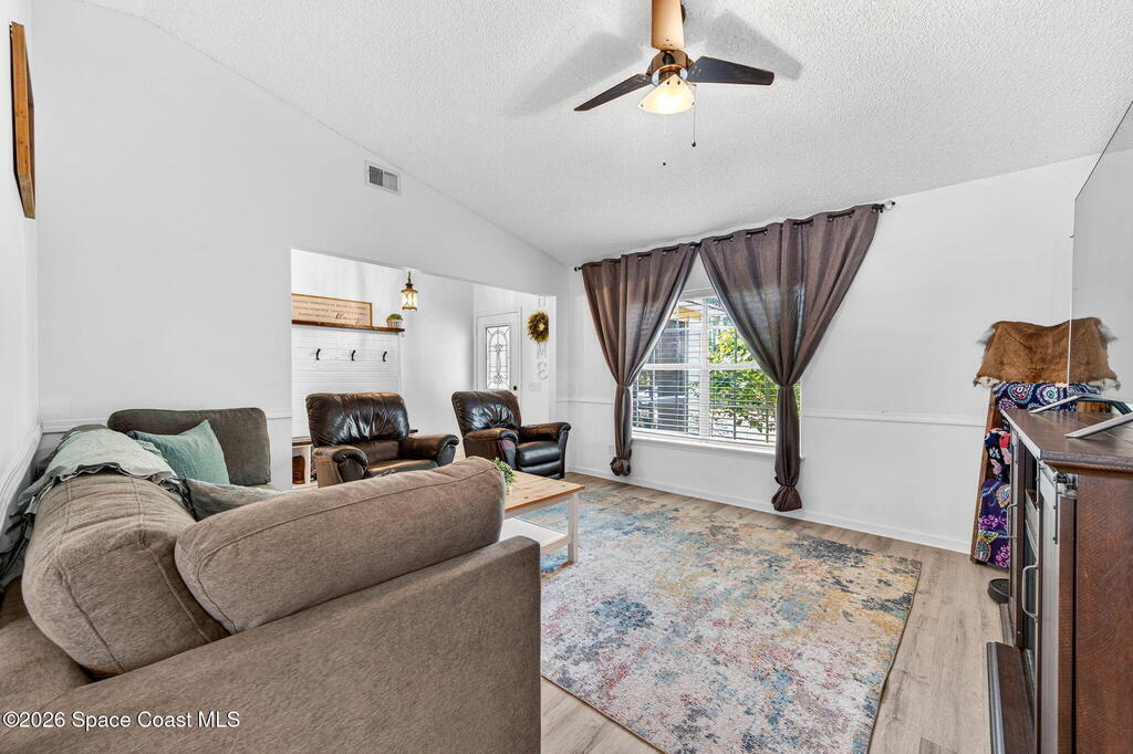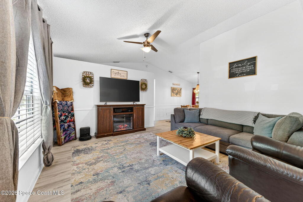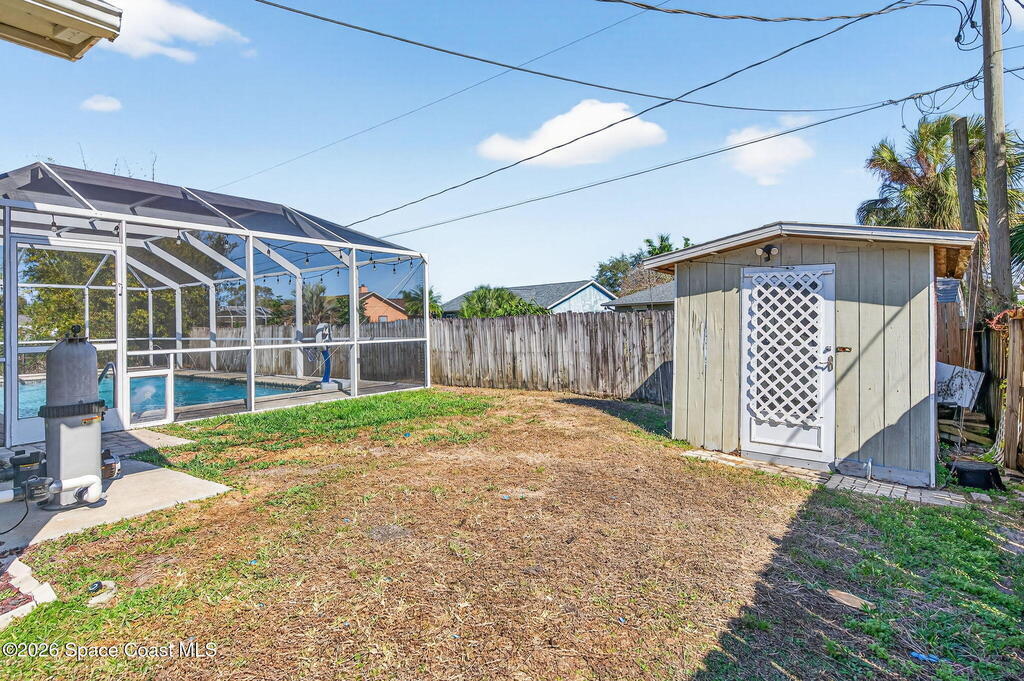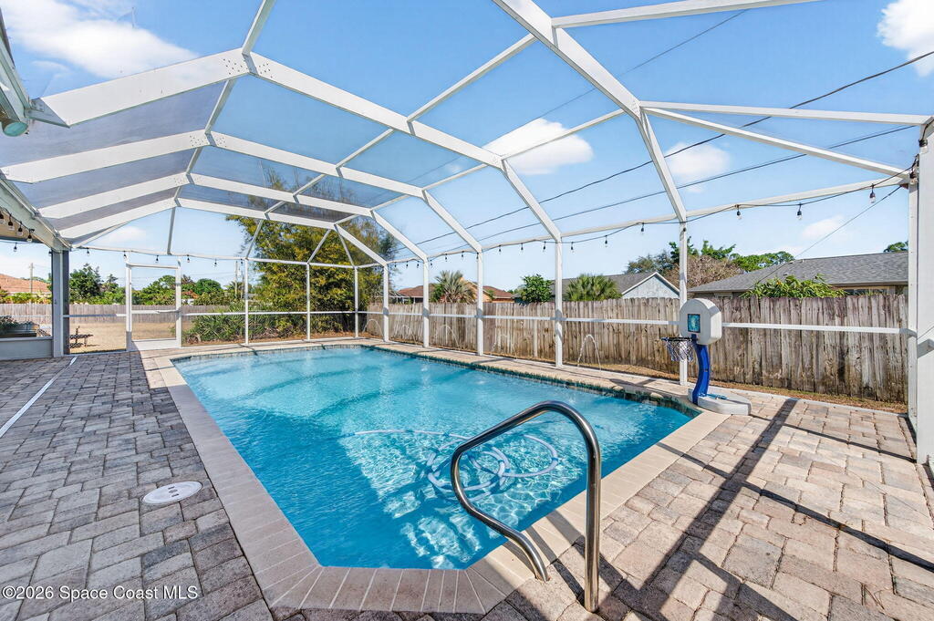 This beautiful home features an amazing outdoor oasis with a saltwater pool and entertainment area, perfect for enjoying your downtime with a built in bar and separate tv area with fireplace. The interior has vaulted ceilings, a split bedroom plan, living, dining and family rooms. The kitchen has newer stainless steel appliances and granite counter tops. The spacious primary bedroom with walk in closet and luxury ensuite bath boasts a garden tub plus separate shower. Plumbing has been updated, the AC was replaced in 2022 and water heater in 2021.The metal roof provides safety during storms as well as hurricane shutters. The fenced back yard has a shed and fire pit area. The home is on a quiet street near schools as well as shopping and restaurants in Bayside Lakes and the Malabar corridor. 30 minutes to the Beach or Melbourne airport. An hour from Orlando airport and Disney. Close to everything yet this home enjoys privacy. No HOA.