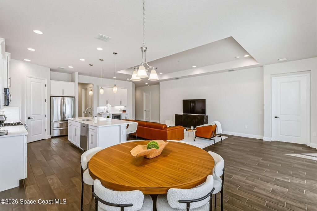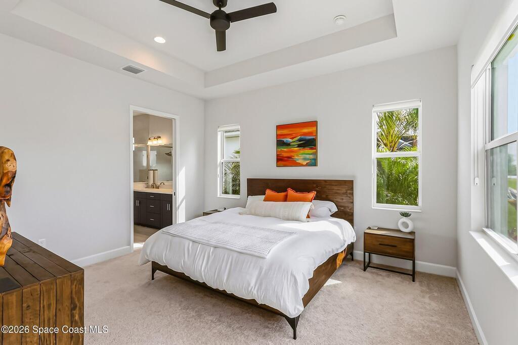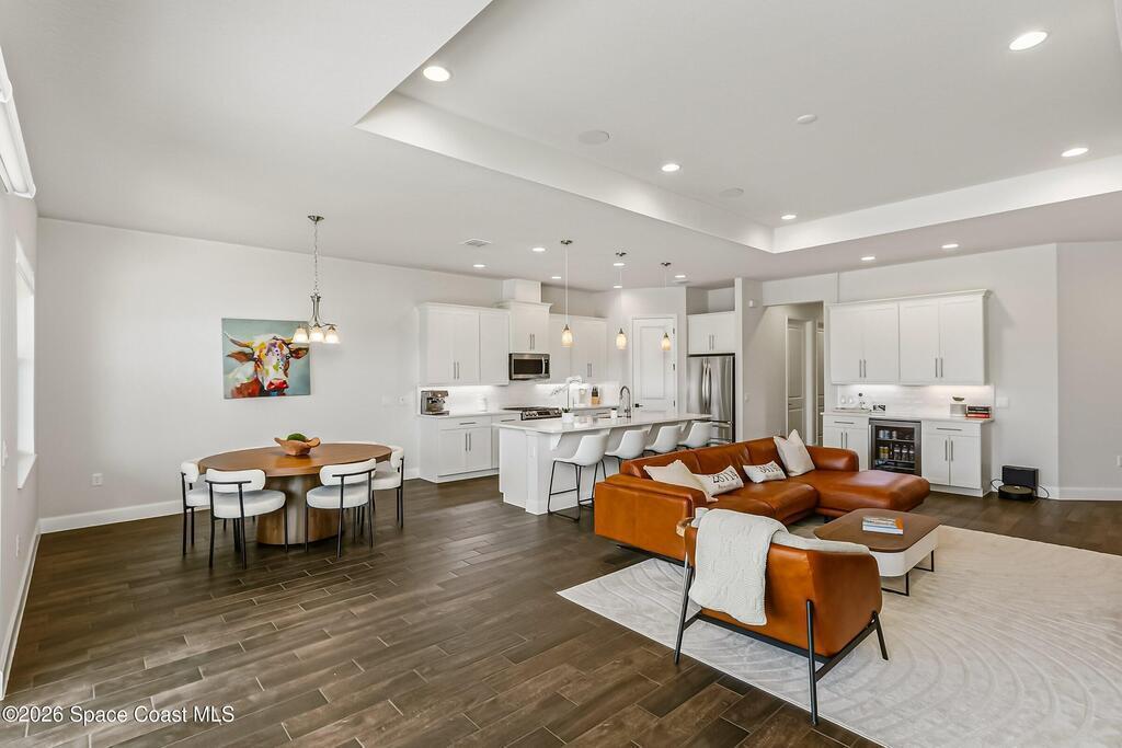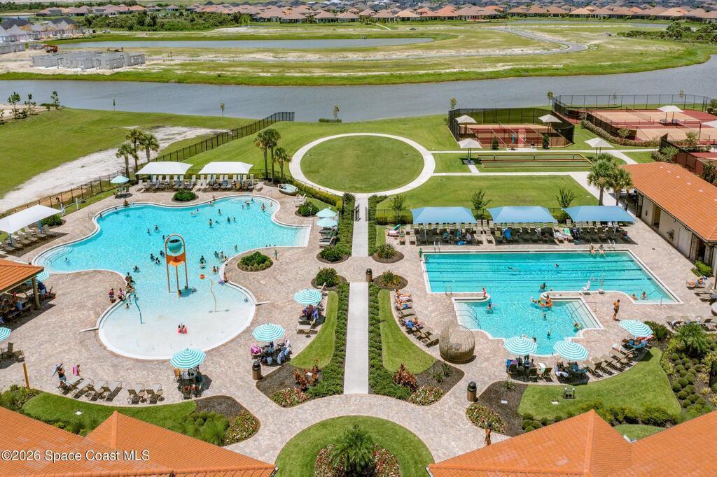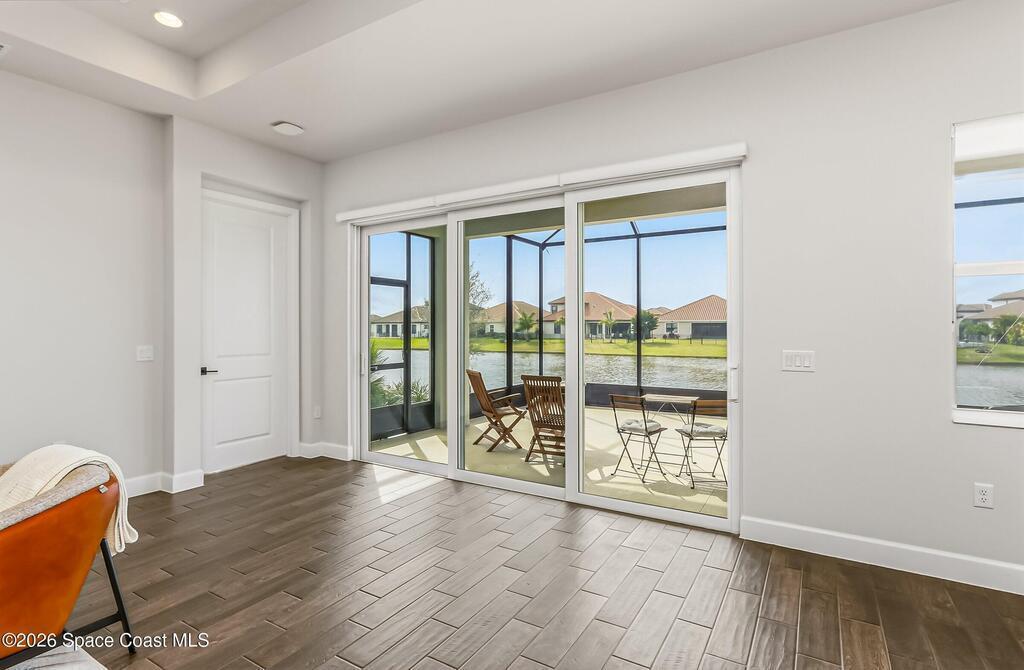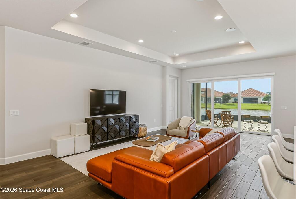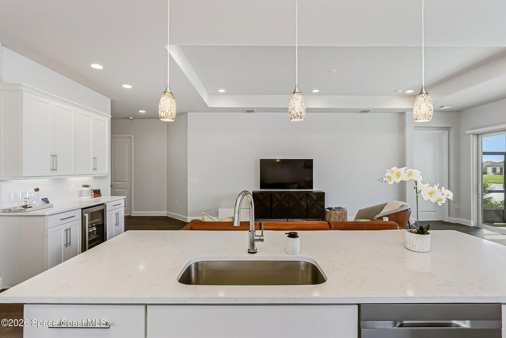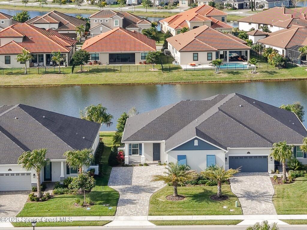 Immaculate 3 BD, 2 BA, half-duplex w/ side-load 2 car garage, nestled in the highly desirable Avalonia community, an upscale, carefree lifestyle, in Viera. Coronado floor plan offers an elegant open-concept design, where breathtaking water views welcome you the moment you enter. Gourmet kitchen is beautifully appointed w/ quartz countertops, large kitchen island, gas range, all premium appliances, opening to a spacious family room ideal for entertaining. Triple glass sliders lead to a fully screened, extended lanai that seamlessly blends indoor & outdoor living while overlooking tranquil water vistas. OVER $50K in UPGRADES include plank wood-like tile, tray ceilings, impact-resistant front windows, beverage/wine center w/ refrigerator tankless gas water heater. Enjoy resort-style living - HOA includes yard care, professional landscaping, & exterior maintenance. Located within walking distance to schools, Addison Clubhouse, shopping & dining. Only 45 min. to Orlando & 15 min. to beach