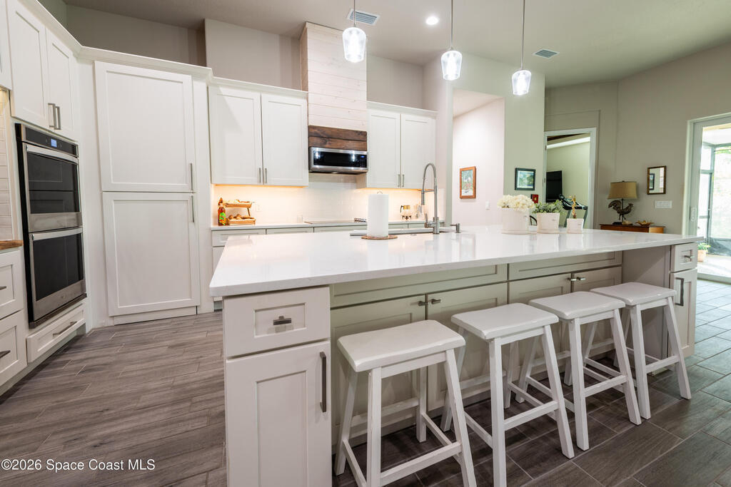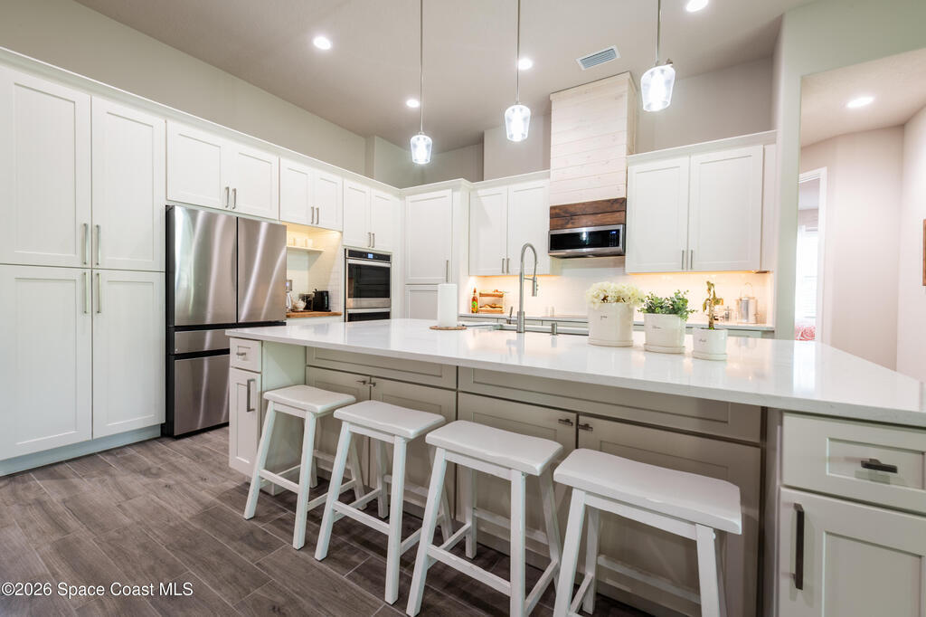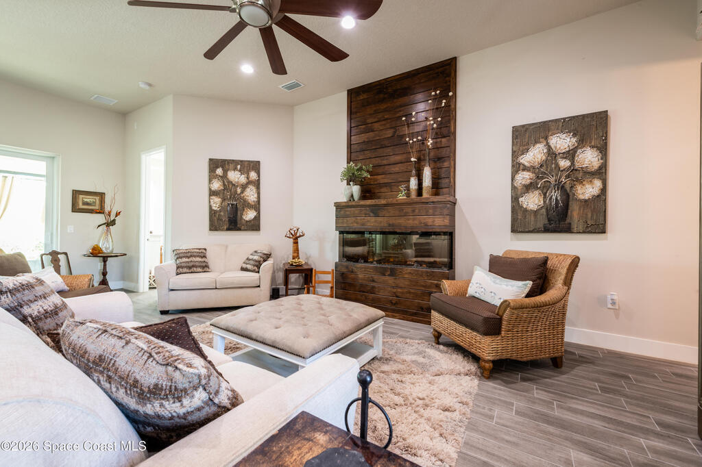 GORGEOUS 4 bedroom, 3 full bath home with 2,400 square feet of comfortable living space. Office & Bonus room let's you have many options in ''The Haven'' floor plan. This home features an open floor plan with updates throughout and custom finishes that give it a unique, one of a kind feel. The living room includes an electric fireplace integrated into the accent wall. Step outside onto the large screened in porch with curtains to block the afternoon sun. The Landscape panels add a nice sense of privacy & seclusion. Located in a central area just moments shopping plazas, the Indian River, and world famous Cocoa Beach with easy access to rocket launch views! You don't want to miss this one! ***Professional photos to come