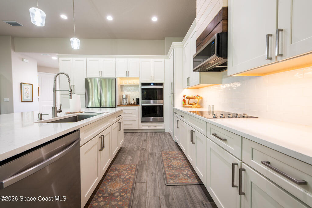 - Equipment/AppliancesDishwasher, Double Oven, Electric Cooktop, Electric Water Heater, Microwave, Refrigerator and Tankless Water Heater