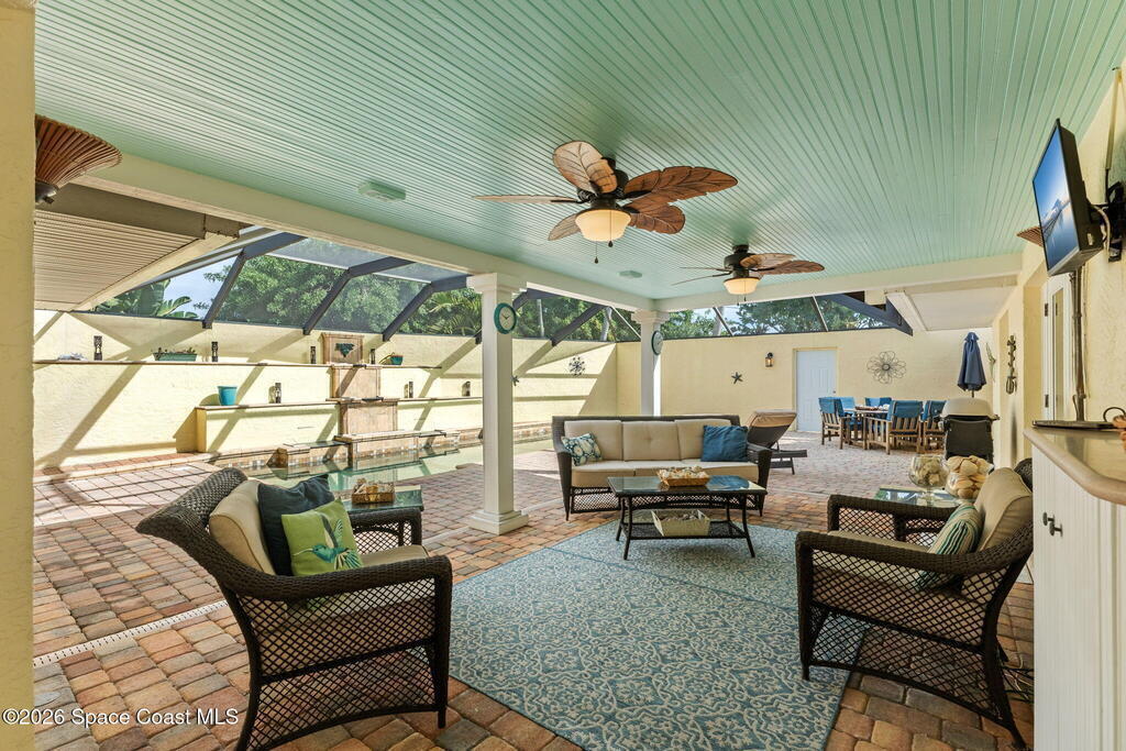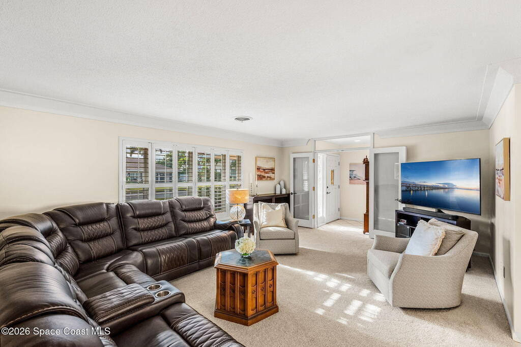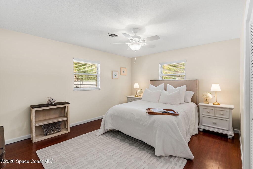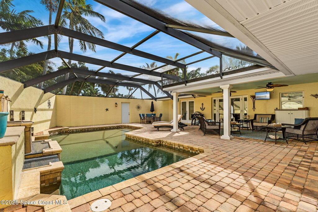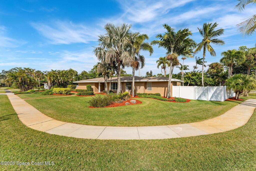 Experience the best of location and lifestyle in this charming 4-bedroom, 2-bath concrete block corner home, perfectly positioned in a beautiful neighborhood with riverfront homes just across the street and the beach within walking distance. Located on a quiet, dead-end street, the property is framed by beautiful landscaping and offers a private backyard retreat complete with a screened-in lanai and pool. This home features a 2-car garage, a new roof, built-in closets, and updated plumbing. With a great location near everything, just 15 minutes to Melbourne Airport and one hour to Orlando and Orlando International, this is a rare opportunity to enjoy peaceful living with a touch of luxury.