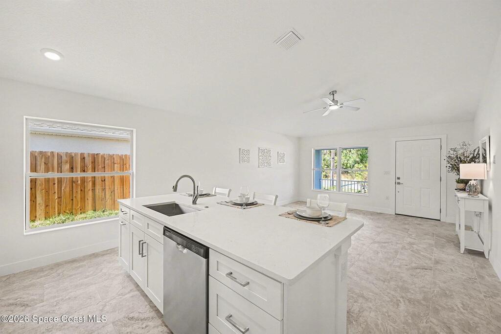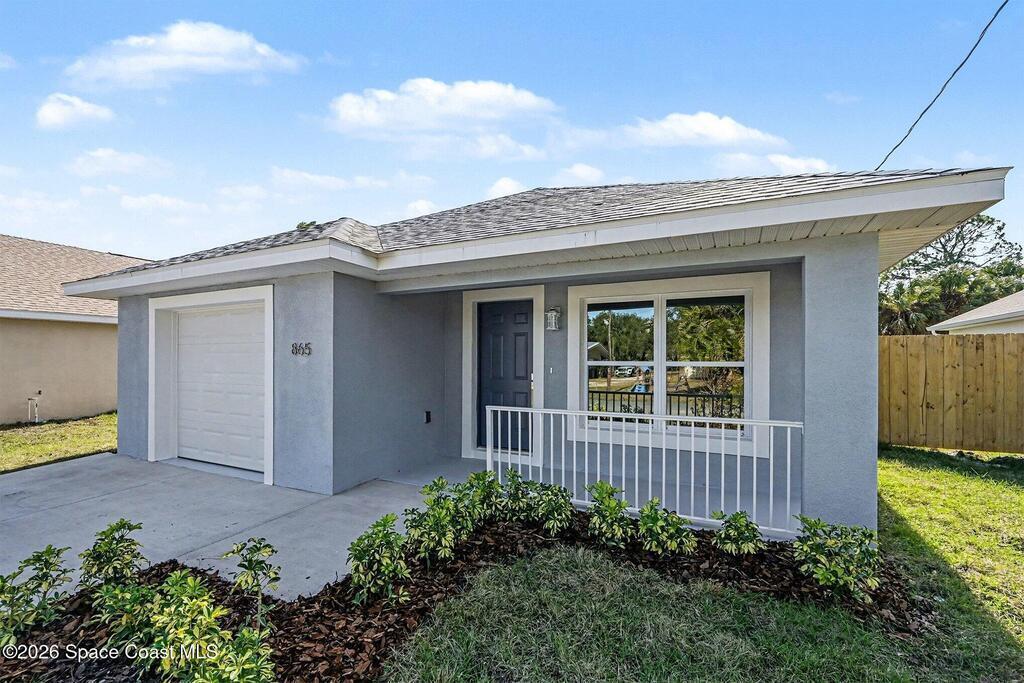 Discover your ideal living space in this new construction, MOVE-IN- READY home, meticulously designed for maximum comfort and convenience. This residence features 3 elegantly appointed bedrooms, 2 stylish bathrooms, and a practical 1-car garage. Each detail has been thoughtfully considered, from the tile flooring that extends throughout the home to the contemporary lighting and cabinetry. The primary suite has sliding glass doors leading to a covered back patio, a spacious walk-in closet, and a private en-suite bathroom for enhanced privacy. The kitchen is a standout, featuring white shaker cabinets with soft-close doors and drawers, quartz countertops, and stainless steel Whirlpool appliances. Experience the added security and energy efficiency of impact windows throughout the home. Additional highlights include the epoxy-coated garage floor, a private fenced backyard, and an efficient irrigation system. As an added incentive, the seller is offering $5,000 towards buyers closing cost