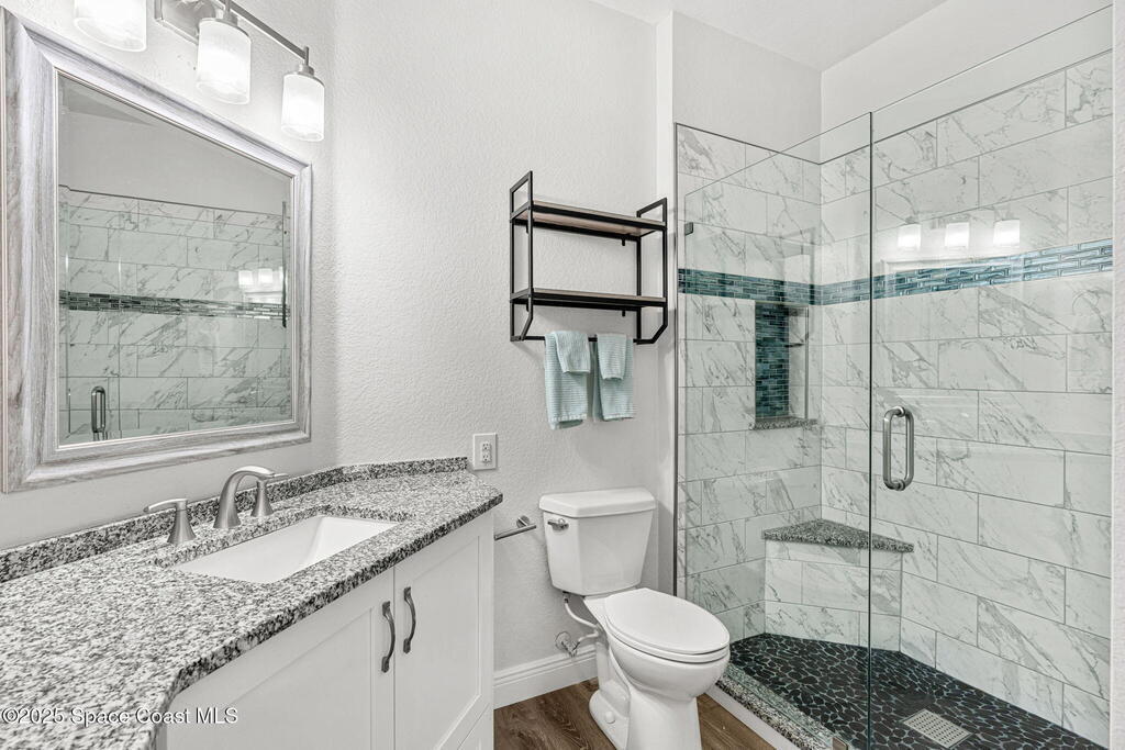 Welcome to this beautifully remodeled 3-bedroom, 2-bathroom home that offers comfort, style, and convenience--all on the highly desirable first floor. Unlike other units in the complex, this home features an open-concept kitchen that's been thoughtfully reimagined with granite countertops, stainless steel appliances, and crisp white shaker cabinets. The kitchen seamlessly flows into the living and dining areas, creating a bright, airy space perfect for entertaining or relaxing with a view of the outdoors. Updated luxury vinyl tile flooring runs throughout, adding warmth and durability. The flexible floor plan offers two possible ensuite bedrooms, or a traditional owner's suite with two additional bedrooms and a shared bath--ideal for families, guests, or a home office setup. The spacious owner's suite includes a large walk-in closet and a walk-in shower designed for easy accessibility. Enjoy your morning coffee or evening wine on the oversized lanai, a peaceful extension of