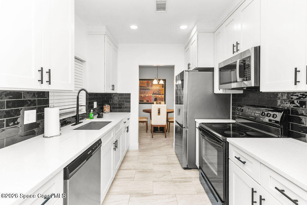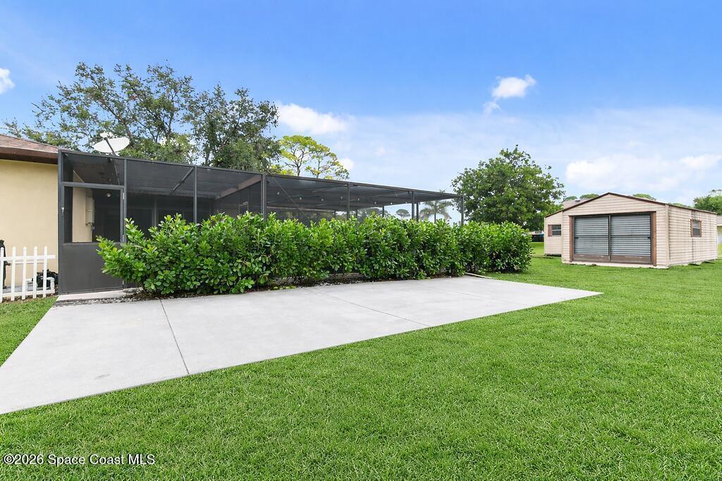 COMPLETELY REMODELED POOL HOME in Palm Bay- This 3/2 pool home is Florida living encapsulated. With its open concept floor plan, bathed in natural light, this space is perfect for entertaining. The heart of the home is the great room, a space that connects the updated kitchen complete with newer appliances and crisp white shaker style cabinetry, to the separate living rooms. The split floor plan has the primary suite located off of the living area, granting privacy and boasting a spacious walk-in closet and an ensuite with a large shower. The remaining two bedrooms share a full bath on the other side of the home. The rear of the home holds a screen in porch that blends to the lanai covered pool. Enjoy the pool all year round with the new electric pool heater. The outdoor bonuses continue with an expansive back yard with two sheds. Close to beach/river access as well as PSFB along with many local shops, restaurants & more, do not miss your chance to make Palm Bay hom