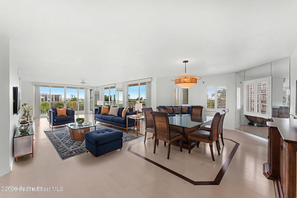 Very spacious 5TH-FLOOR, SW-FACING END-UNIT CONDO located in the highly sought-after, gated Emerald Seas community on Ocean Beach Blvd. This gorgeous, updated residence offers relaxing ocean views, abundant natural light, and a desirable split floor plan that lives comfortably like a home. Enjoy a wraparound balcony with southern exposure showcasing miles of coastline, stunning sunrises and sunsets, and unforgettable rocket launches. The spacious kitchen features wood cabinetry and granite countertops, complemented by oversized bathrooms and a dedicated office area. This well-maintained oceanfront complex delivers true resort-style living just steps from popular restaurants, bars, Publix, and more. Amenities include a heated pool and spa, private beach access, sauna, fitness center, tennis courts, and NEW pickleball courts. Deeded under-building parking with private entrance and large storage area is perfect for beach gear. MILESTONE/SIRS COMPLETE & UP TO DATE.
