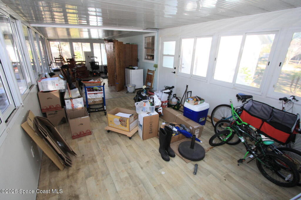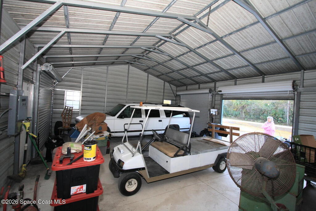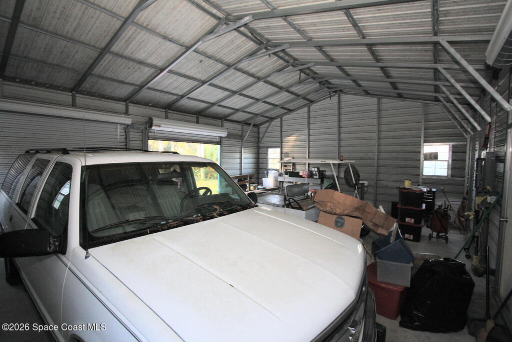 Beautiful corner lot with over an acre for all of your toys. The metal workshop building offers plenty of space for your projects, the air compressor stays, and you are close to shopping (Publix & the New Aldi), the 510 causeway to the beaches (15 minutes), the Indian River (Boat Launches), Sebastian, and Fellsmere. Easy on to Hwy 95, the airports, but far away enough not to hear the noise. There are also several sheds on the property, that stay, and there is plenty of space for parking. New drain field in April of 2025. The home also offers a large covered lanai, and several porches.