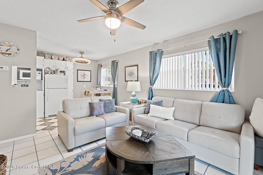 This sun-filled ground-floor corner condo is perfectly located just steps from the ocean! Ideal as a weekend getaway, full-time residence, or investment, this 1-Bed, 1-Bath unit combines coastal charm with practical comfort. Inside, you'll find an open floor plan featuring a sunny living area, well-equipped kitchen with newer appliances, and a comfortable bedroom--fully furnished with thoughtfully updated furnishings and move-in ready. Start your day with coffee on the deck or grab your towel and stroll to the beach in minutes. When you're not enjoying the sand and surf, explore Port Canaveral's dining, entertainment, and cruise terminals nearby. Recent improvements include the current pool renovation and updated interior finishes. Ground-floor convenience means no stairs and easy beach access. Whether you're seeking a personal coastal retreat or a turnkey rental with excellent income history, this property delivers. Easy, low-maintenance living just one block from the ocean awaits!