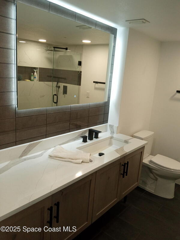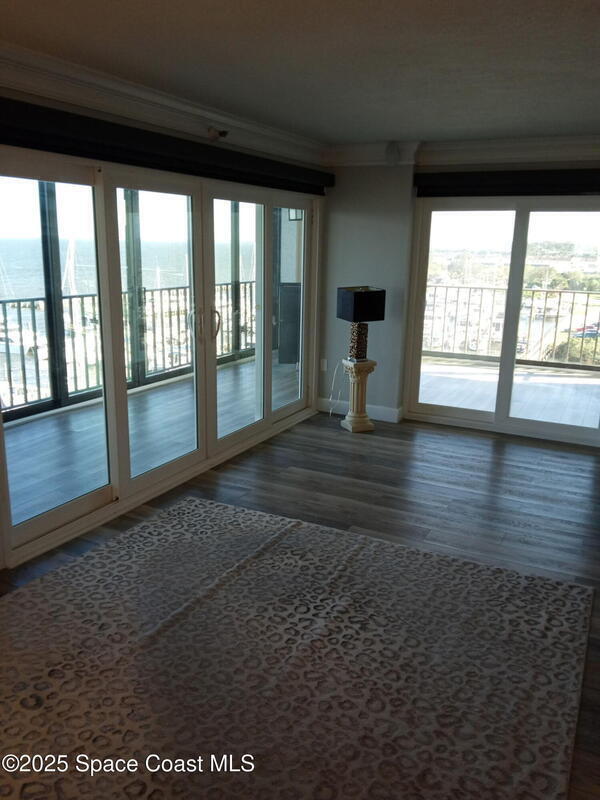 This is a MUST SEE UPDATED TOP FLOOR end unit LUXURY PENTHOUSE. The PANORAMIC view of the space coast on the Indian River is the perfect location for watching Rocket Launches and watching Dolphins play. Updated flooring throughout. Complete kitchen remodel. Kinetico Water Softner. Updated light fixures throughout unit. Balcony has Luxury Vinyl. 3 sets of White Jeld Wen Energy Efficent Exterior Sliding Doors. Motorized blinds on exterior sliding doors. This Condo is a must see!!! PGT Impact Sliding Glass Doors enclosing balcony creating additional living space.