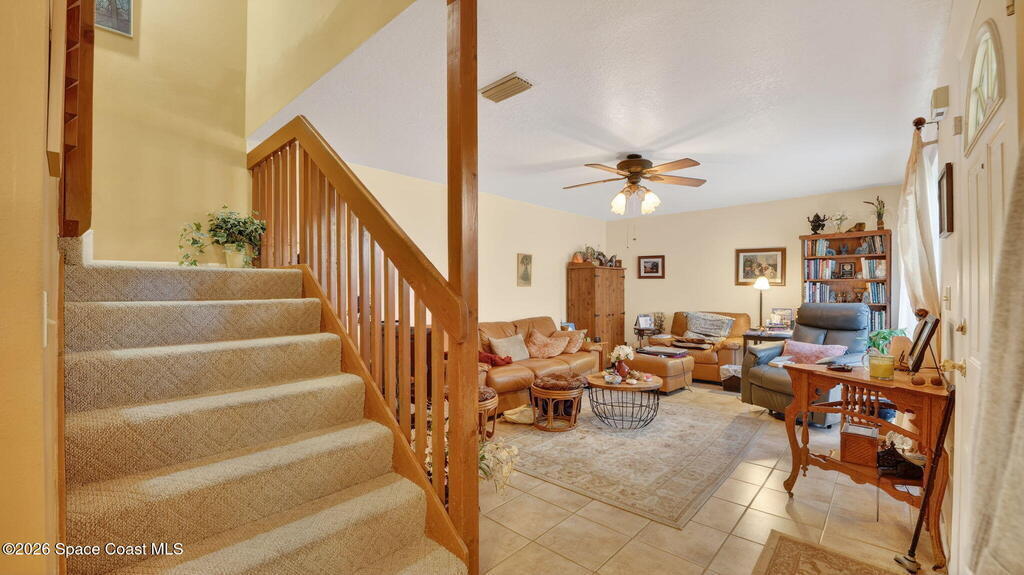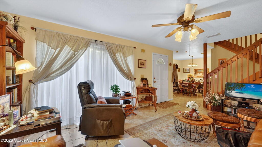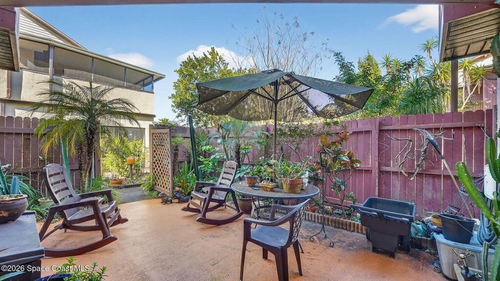 There's No Place Like Home! Step through a charming private courtyard entrance and into a home that's truly move-in ready--being sold fully furnished, including washer and dryer. Located in Oak Tree Gardens, this 2-bedroom, 2.5-bath townhouse offers 1,247 sq ft of relaxed, low-maintenance living. The main level is ideal for everyday life and entertaining, featuring an open flow, convenient half bath. Upstairs, both bedrooms provide privacy, each with its own full bathroom, and in-unit laundry. Both bedrooms open to a private balcony, perfect for morning coffee or winding down in the evening. Major upgrades add peace of mind, including a recent roof (2023), updated electrical panel and full replumb. Centrally located near shopping, dining, and commuter routes, this furnished Oak Tree Gardens home is ideal for a primary residence, second home, or investment--just bring your suitcase and settle in. Minutes from Space Center, beaches, downtown, I-95 & cruise port.