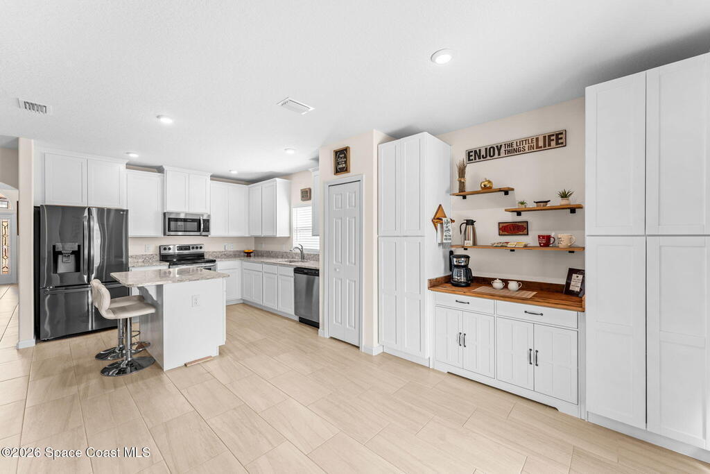 - Interior FeaturesBreakfast Bar, Breakfast Nook, Built-in Features, Ceiling Fan(s), Eat-in Kitchen, Entrance Foyer, Kitchen Island, Open Floorplan, Pantry, Primary Bathroom -Tub with Separate Shower, Primary Downstairs, Smart Thermostat, Split Bedrooms and Walk-In Closet(s)