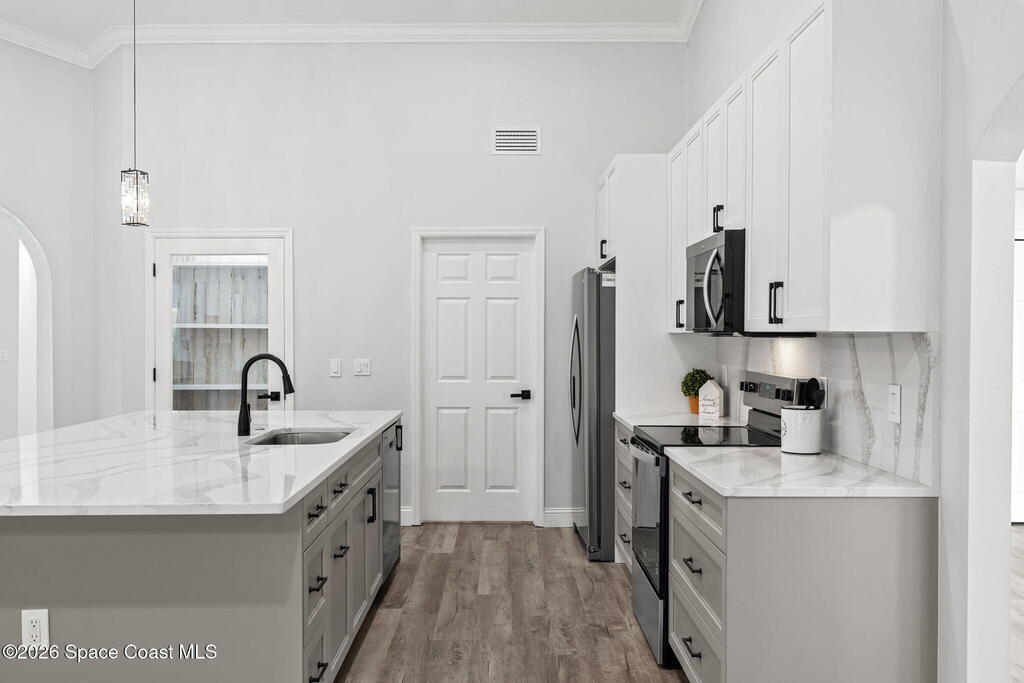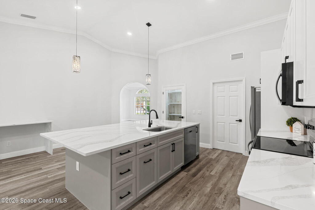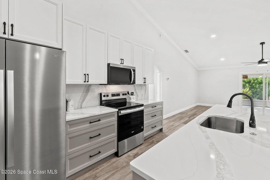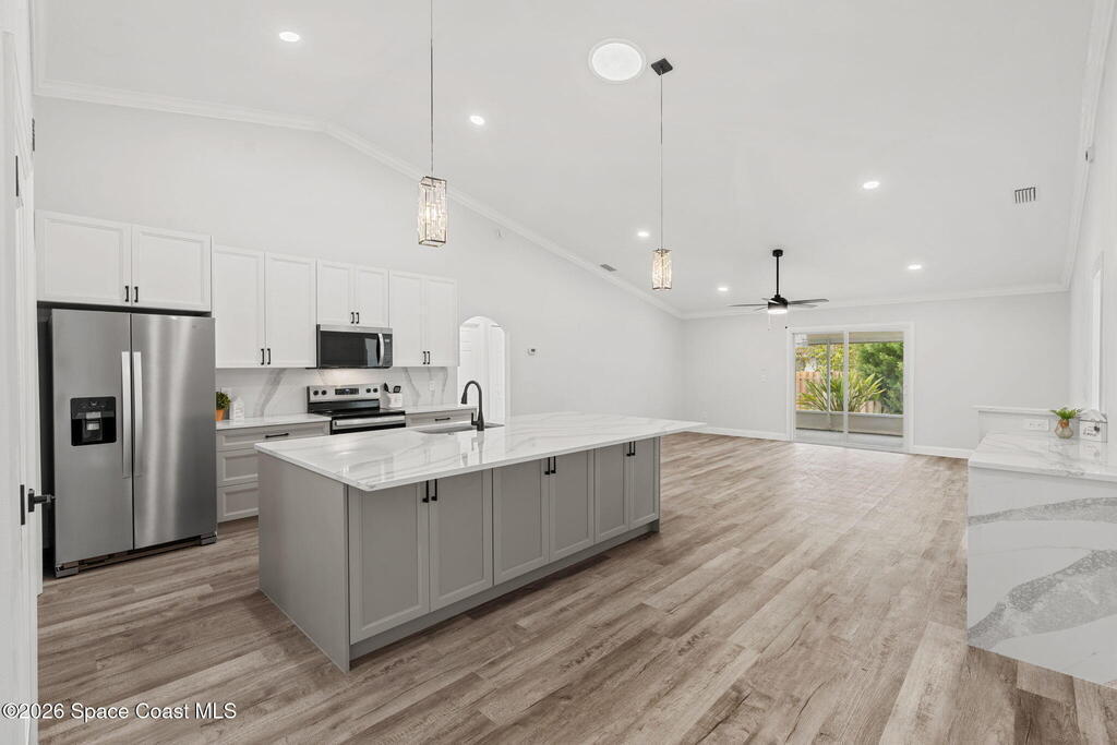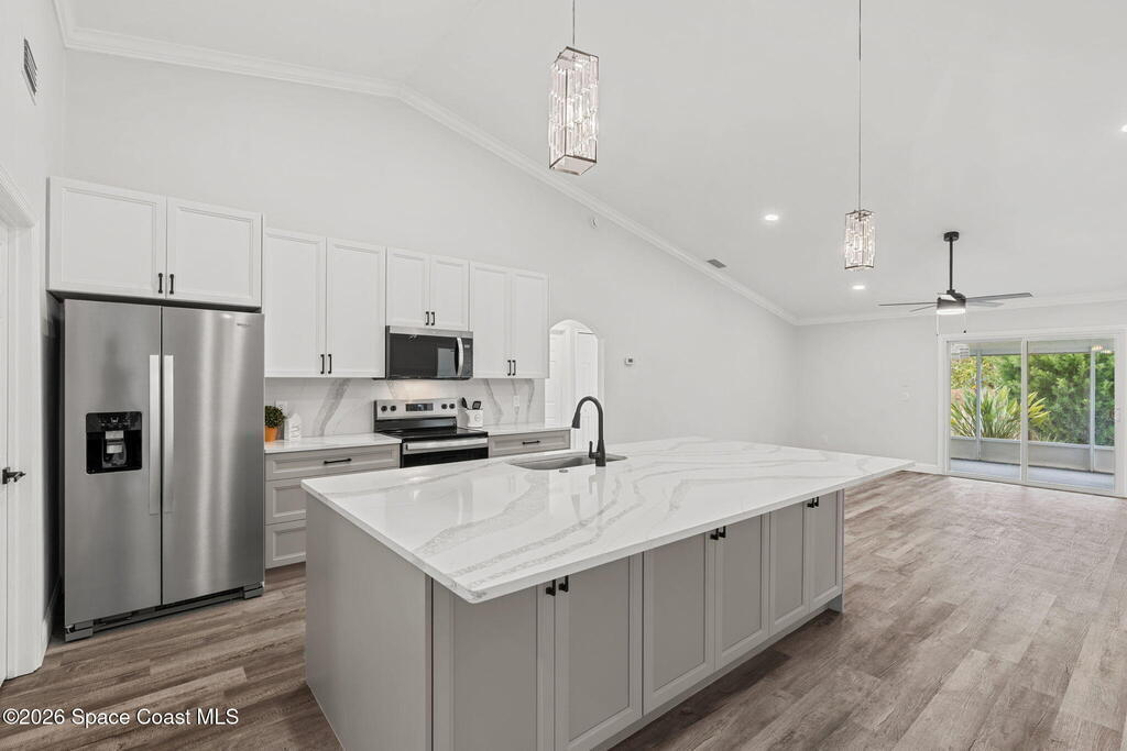 Welcome to this FULLY RENOVATED Lake Washington home, tucked away on a private street with fewer than ten neighboring properties--offering rare privacy and tranquility. NEW ROOF 2025. Inside, soaring volume ceilings and luxury LVP flooring throughout create a bright, modern feel. Formal Dining Room & Flex Space/Den. The stunning chef's kitchen is the heart of the home with stainless appliances, quartz counter tops & featuring an oversized island with seating for up to six--perfect for entertaining. Retreat to the spacious primary suite, complete with a spa-inspired soaking tub and a large walk-in shower. A generous side-loading garage provides ample storage, and the home offers plenty of space for comfortable everyday living. City Water and Sewer. Ideally located close to everything--shopping, schools, major roadways, Patrick Space Force Base, and THE BEACH!.Don't miss this exceptional opportunity--Schedule your showing today!