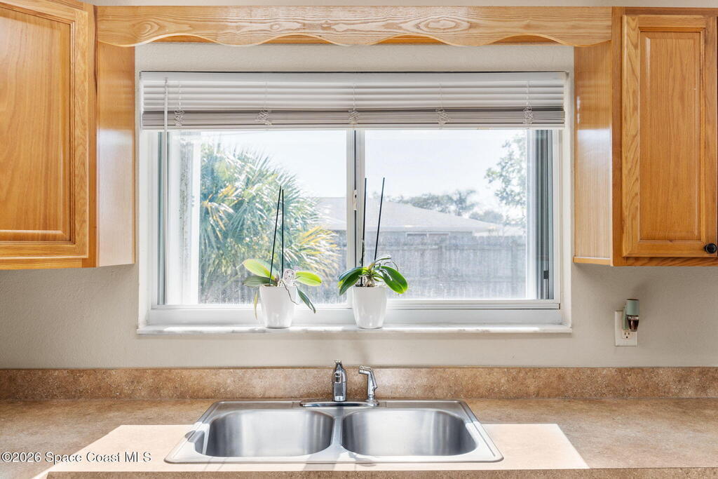 Well-maintained 2-bedroom, 2-bath home located in Port St. John with key updates already completed. The roof was replaced in 2024 and the home is equipped with hurricane shutters for added peace of mind. Features include a one-car garage, a spacious kitchen with a large island ideal for cooking and entertaining, and an open, functional layout. The property is connected to sewer and offers a fully fenced backyard--perfect for pets, play, or outdoor enjoyment. Conveniently located near shopping, schools, and major roadways. Solid option for a primary residence, downsizing, or investment.