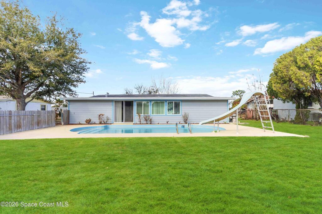 This beautiful pool home offers 3 bedrooms, 2 full baths, and a home office or bonus room, providing flexible space for today's lifestyle. The solid concrete block home features a roof installed in 2014 and an A/C system from 2019, as well as updated electrical! The exterior shines with freshly painted walls, fascia, and soffits, all in excellent condition. Inside, a huge Florida room overlooks the pool and fills the home with natural light. Terrazzo floors run throughout most of the house, adding durability and classic Florida charm. Spacious, fully fenced backyard ideal for kids, pets, and entertaining family and friends. Enjoy a large, freshly painted pool deck with plenty of room for outdoor furniture and lounge chairs, plus convenient poolside storage in a detached metal building. A thoughtfully designed walkway leads from the front of the home to the backyard, helping keep foot traffic out of the living areas. Indoor laundry room as well!