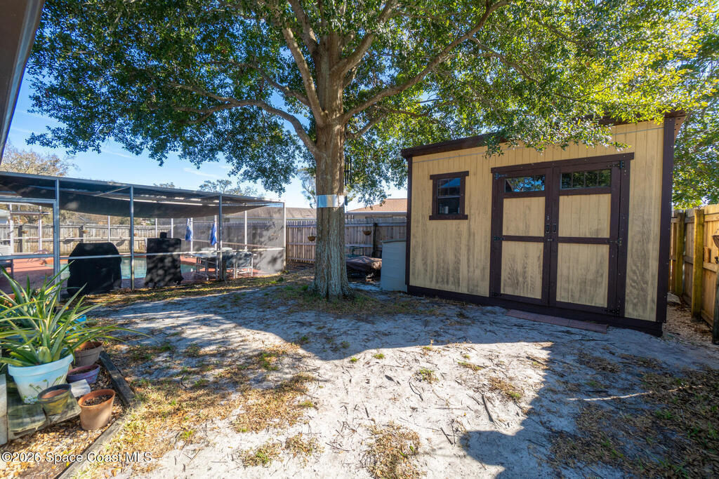 One of the best-priced POOL HOMES in the Eau Gallie area. This home offers great curb appeal and shows beautifully with spacious rooms, plenty of storage and a flexible floor plan. The updated kitchen, large primary shower, and screened, solar-heated pool make it ideal for comfortable Florida living.A sewing room/office can easily be converted into a fourth bedroom, and there is an additional enclosed porch under air, offering even more usable space w/spa electric hook up. The A/C system is zoned for different rooms, and the home features a solar water heater. Manage both the sprinkler system and pool by app, and enjoy the savings of a sprinkler system on well water.Additional highlights include a 2021 ROOF, hurricane shutters, a newly installed outdoor shed. The home is not in a flood zone. Conveniently located near schools, the beach, I-95, shopping, and trendy EGAD.Garage has room for large pick up truck & 2nd car.