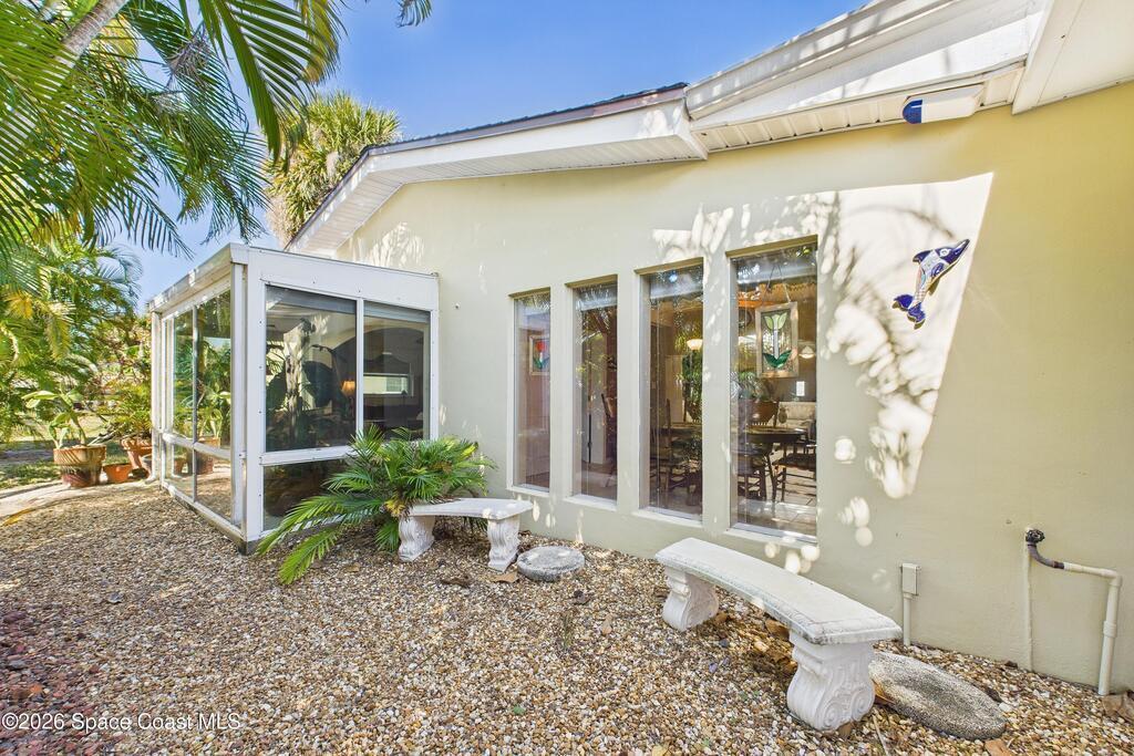 Waterfront living at its finest on an oversized lot with 224 feet of direct river and deep-water canal frontage offer breathtaking River views. This 3-bedroom, 2-bath home offers two additional bonus rooms, currently used as an art studio and home gym, providing flex space for work, creativity, guests or open it all up. Enjoy daily waterfront beauty with the ability to watch rocket launches and cruise ships from your own backyard, with nearby Port Canaveral. The primary features a full window solarium sitting area, perfect for taking in canal scenery. Boaters will appreciate two boat lifts with ample dock space. The property also offers Accordion shutters and impact sliders for added storm protection and peace of mind. extra parking for boats, RVs, or trailers, complete with RV water and electrical hookups for easy plug-and-play convenience. This is a rare opportunity to own a versatile, well-positioned waterfront home with unmatched views, storage, and lifestyle amenities.