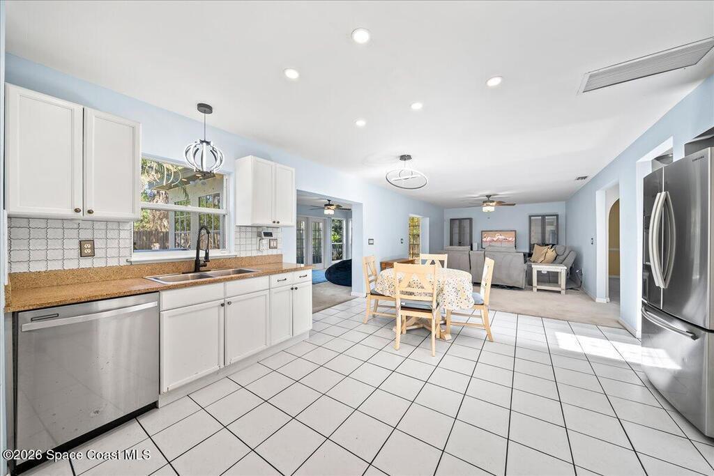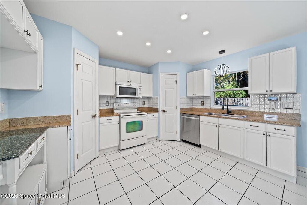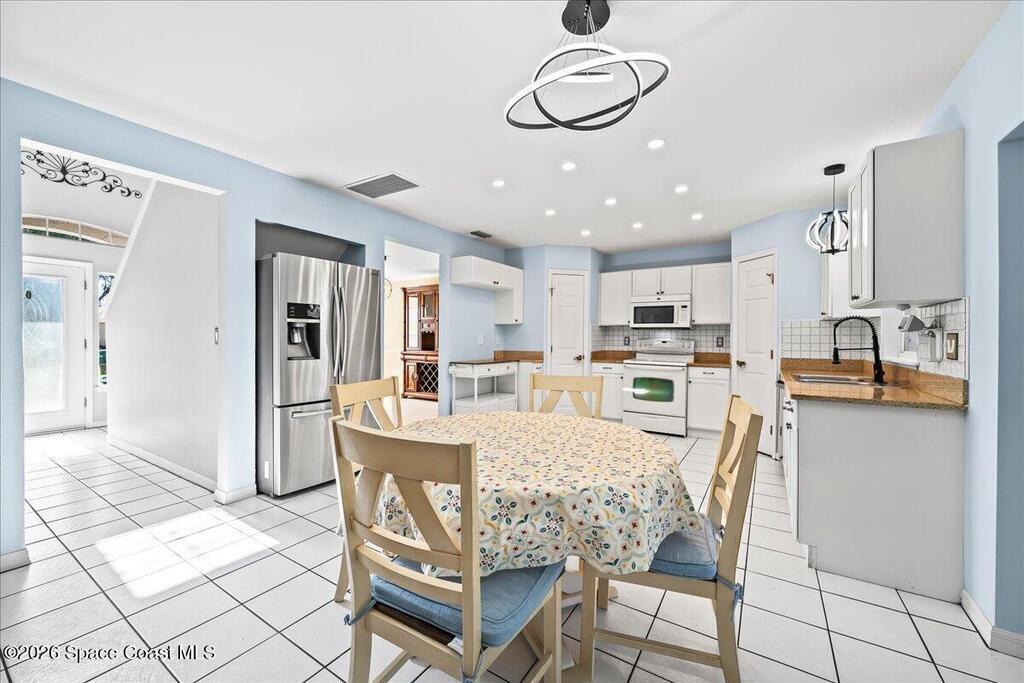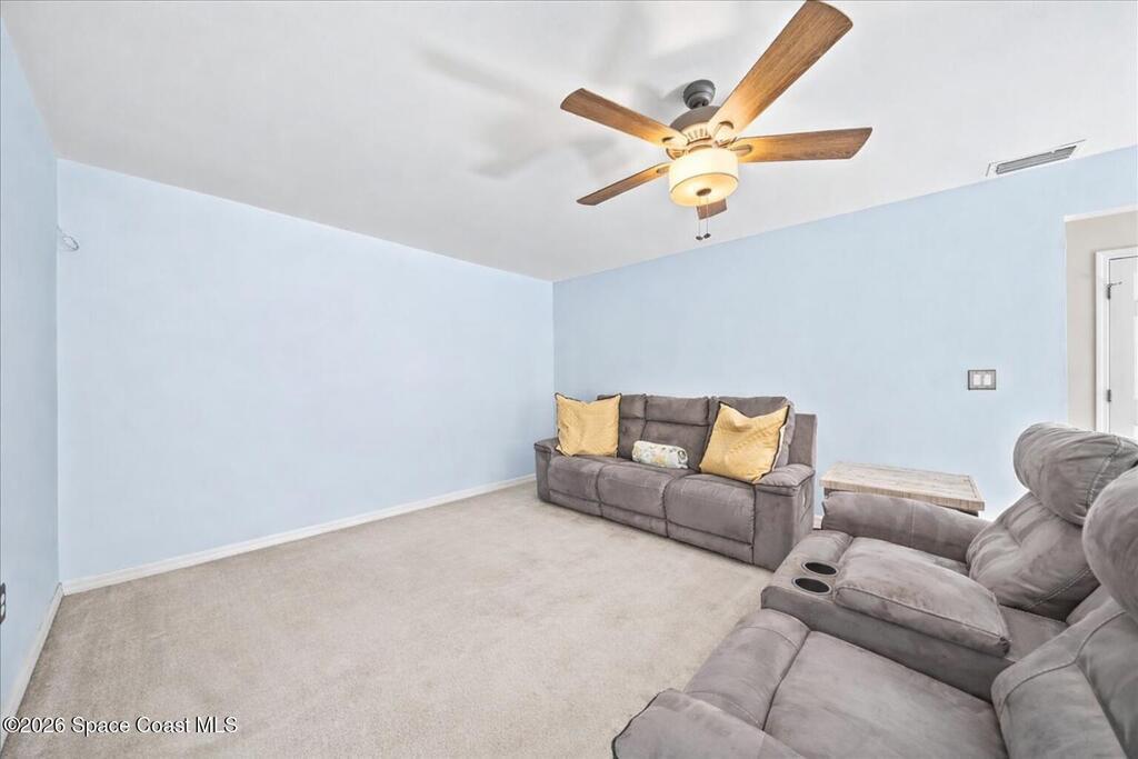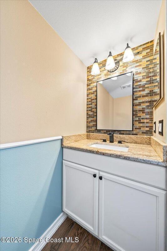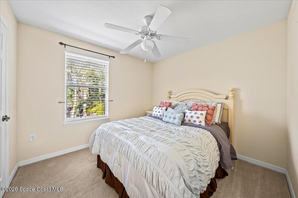 Located within a GATED community, this home offers generous space and a flexible layout. With 4 bedrooms plus a large flex space that could easily be converted into a 5th BEDROOM, it's ideal for multi-generational living, working from home, or simply having room to grow.One of the standout features is the four-seasons SUNROOM, surrounded by windows and filled with natural light. Over the past few years, the homeowner has made several updates including a newer ROOF in 2024, fresh exterior PAINT, updated kitchen BACKSPLASH, new fixtures, and added RECESSED lighting. CROWN MOLDING and CHAIR RAIL add subtle detail and character throughout the home.The FENCED backyard offers plenty of space to entertain or unwind, with no rear neighbors and the rare bonus of watching Space Coast rocket launches from your own yard. The community features a POOL and SIDEWALKS, perfect for evening walks. Conveniently located near I-95, just a short drive to Orlando, and just 10 miles to the BEACH.