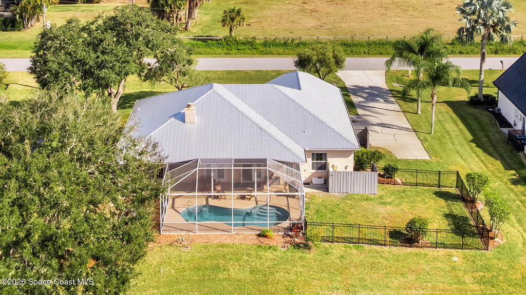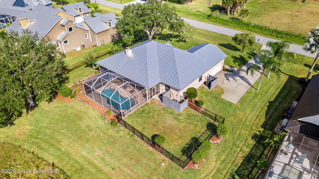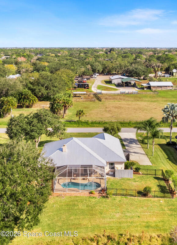 Sit back & relax in your screened-in saltwater pool while enjoying stunning sunsets over a private preserve & peaceful lake. This home offers exceptional privacy w/ a farm in front, protected preserve behind, & on a quiet dead-end street--truly a rare find. The open-concept layout features a modern kitchen w/ granite countertops, stainless appliances, and generous cabinet/pantry space. Open the living room doors on warm days to enjoy pool views & refreshing breezes, or cozy up by the real wood-burning fireplace on cooler evenings. The spacious primary suite includes dual walk-in closets, double vanities, walk-in shower, & soaking tub. Two well-sized guest bedrooms offer great closet space, & the common bath also serves as a pool bath. Upstairs, updated private loft/4th bedroom features new flooring & a remodeled bathroom. Additional highlights include matching tile throughout, window shutters, fenced yard for kids or pets, newer AC & water heater, & a recently installed metal roof.