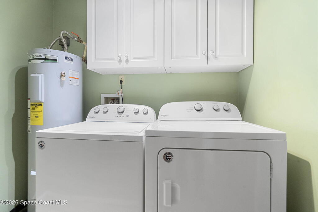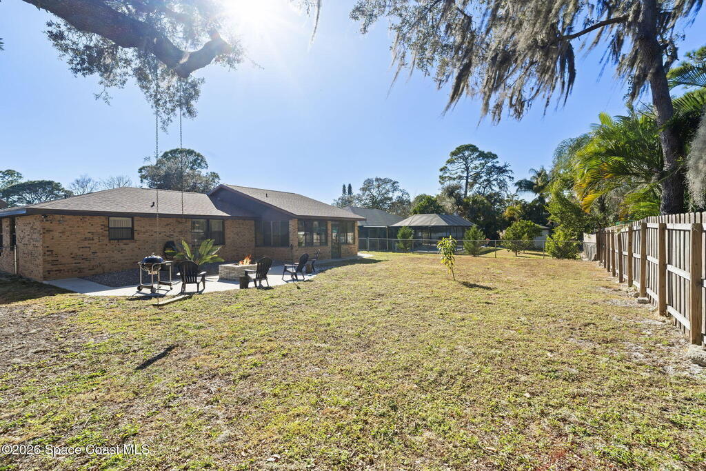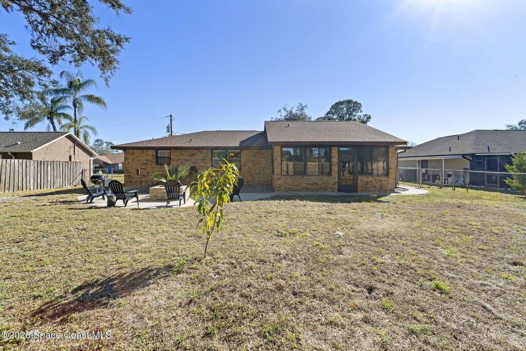 Imagine relaxing evenings by your own custom-built fire pit, hosting friends, or simply unwinding in a spacious, completely fenced backyard with a convenient double gate. This home was made for enjoying the Florida lifestyle--inside and out. You'll love the easy-care flooring throughout with NO carpet, plus brand-new vinyl flooring in the guest bedroom.The screened-in patio with shades and a ceiling fan offers the perfect spot for morning coffee or evening relaxation. Big-ticket updates are already done, including a new roof (June 2025), A/C (2019), water heater (2021), and garbage disposal (2020). With exterior lighting on timers, paid-off ADT alarm equipment, and extra storage cabinetry above the washer and dryer, this home is truly move-in ready and designed for comfort.
