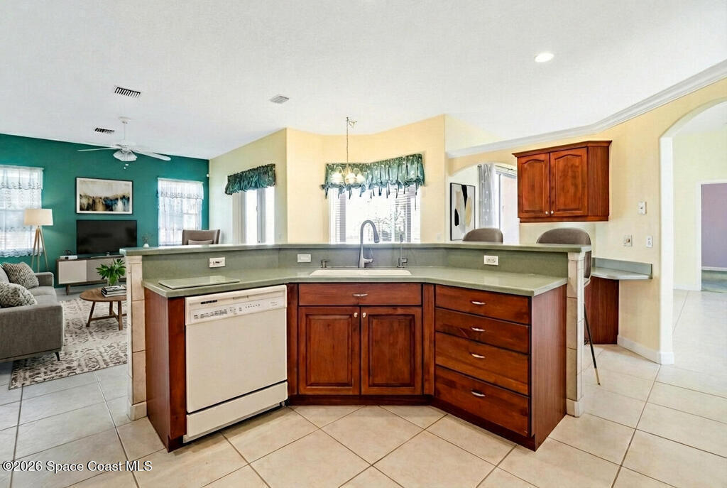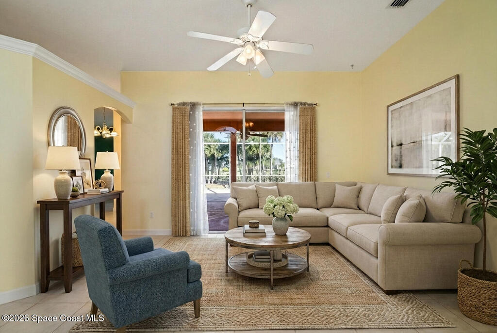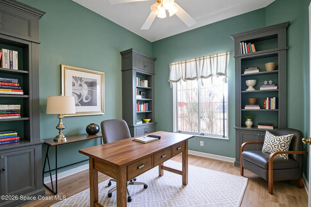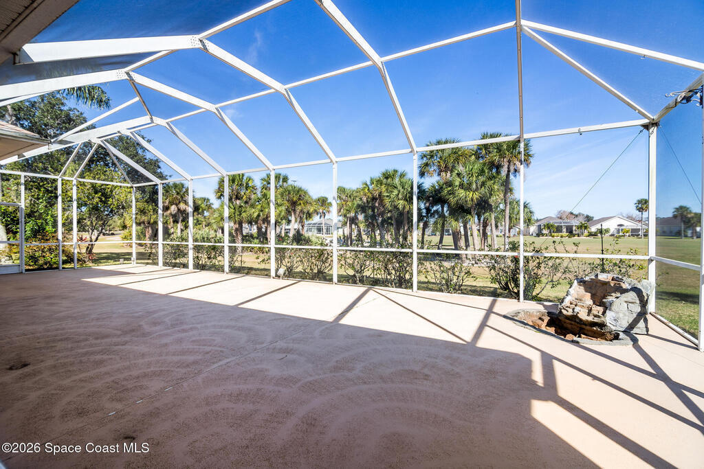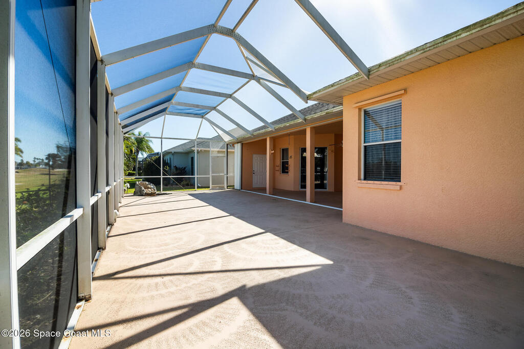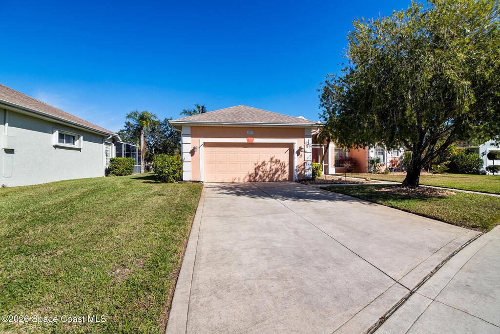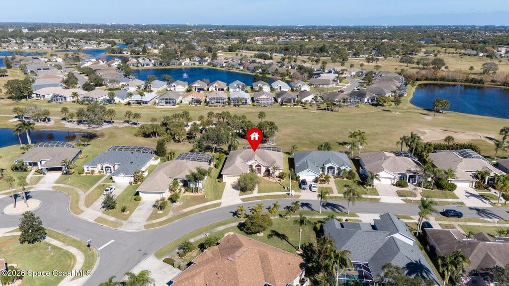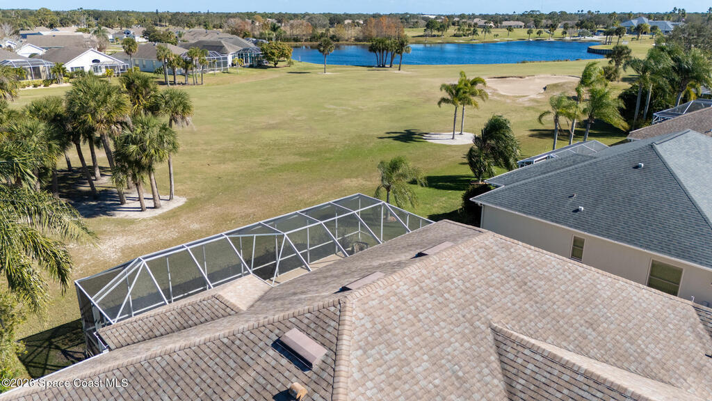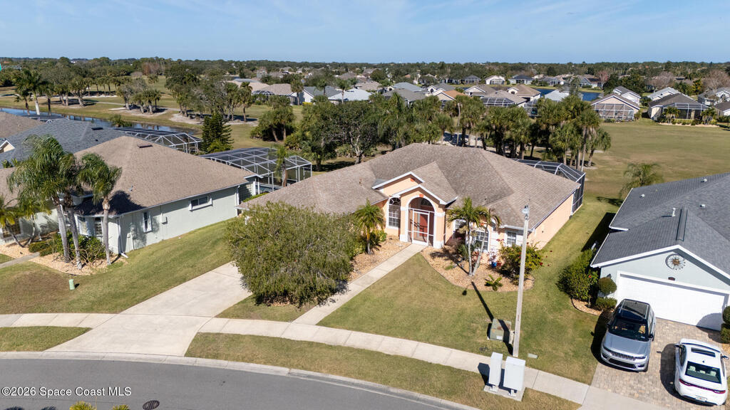 Located in the coveted Canterbury neighborhood within the Viera East Golf Course Community, this well-appointed home sits on a premium golf course lot with beautiful views. The thoughtful floor plan offers three bedrooms, two bathrooms, and a convenient home office. The living room, family room, and owner's suite all open to a massive under-truss porch with an extended lanai; perfect for entertaining and enjoying the serene course setting. The spacious kitchen features timeless wood cabinetry, a newer French door refrigerator and microwave, a large island for seating or gathering, and a charming, mitered window in the breakfast nook, while overlooking the spacious family room with French doors leading to the porch. The owner's suite includes a walk-in closet and an ensuite with a raised-height dual-sink vanity, corner soaking tub, and walk-in shower. A private hallway leads to two generously sized guest bedrooms and a guest bath. Additional highlights include a large laundry room with