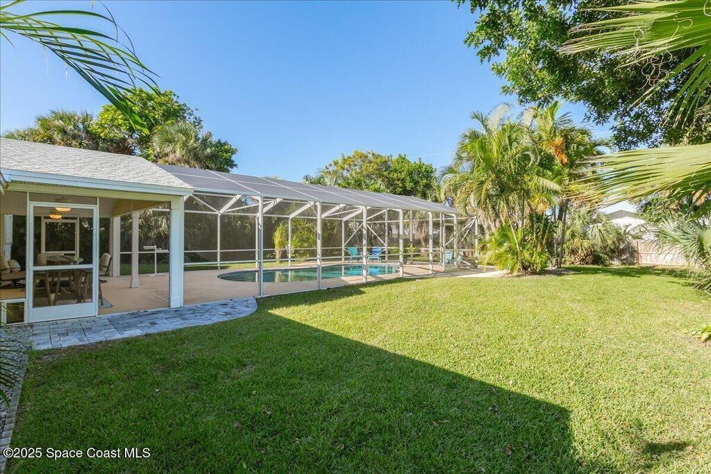 Cozy coastal retreat in the heart of Melbourne Beach! WALKING distance to Gemini Elementary, the beautiful Atlantic Ocean and Spessard holland golf course. OVERSIZED YARD allows for your own private oasis. HUGE POOL with privacy fence make for the ultimate place to unwind, relax and enjoy your own slice of paradise. The large yard also provides plenty of space for future additions. SPACIOUS KITCHEN with granite counter tops and ceramic tile flooring throughout This home also has a RARE LOWER LEVEL that adds an additional 667 sq ft of space, adding plenty of storage. There are many update to this home which include a NEW ROOF 08/25 with a transferable 50 year warranty, UPDATED IRRIGATION PUMP 08/25, A/C 2022, PAVER DRIVEWAY 2023. WATER HEATER 2020. Beautiful SCREENED IN LANAI 2023 and NEW LG ThinQ appliances. This home is truly a hidden treasure! Close to public boat ramp for Mel Beach residence. Enjoy fishing off the pier. Golf cart and bike friendly neighborhood.