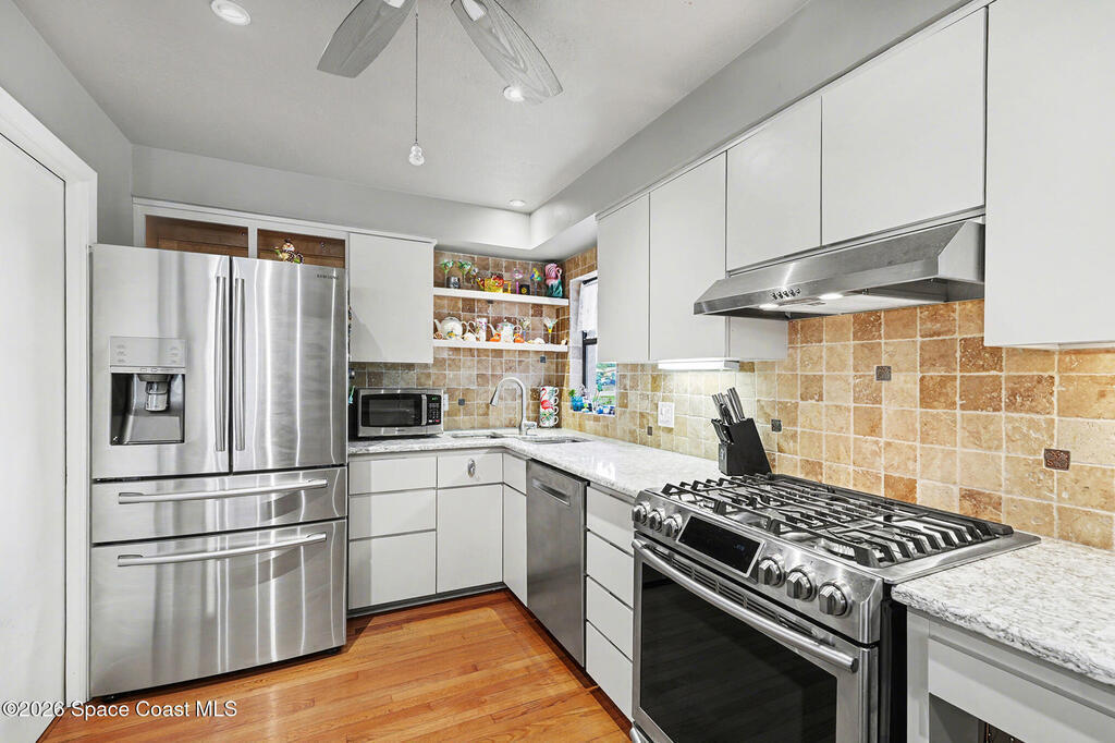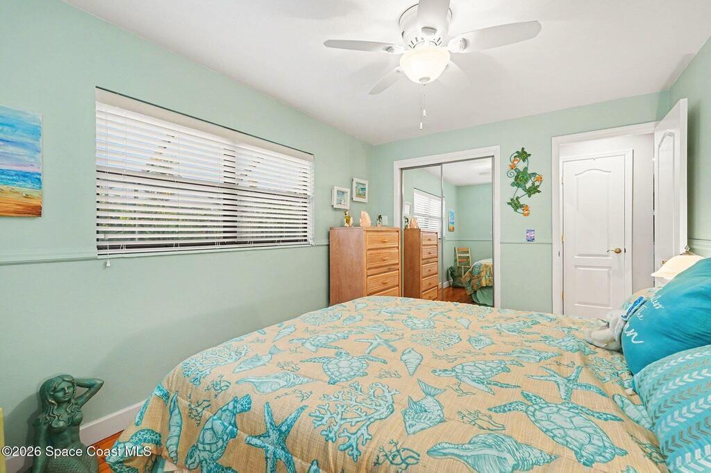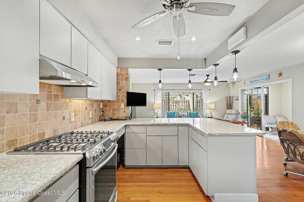 Beautifully updated 3-bedroom, 2-bath pool home with a versatile flex room, located in a highly desirable Merritt Island community. This well-maintained residence offers approximately 2,300 square feet under air, plus an extended two-car garage. The home has been lovingly cared for with many wonderful features. Eat-in gourmet kitchen with quartz countertops, high end stainless steel appliances, and California closets in all bedrooms. Flooring is beautiful solid red oak plank throughout. Additional highlights include recessed lighting, updated bathrooms, one with beautiful spa tub. New Air conditioner. The private, low-maintenance yard is shaded by beautiful mature trees and showcases a 40-foot in-ground concrete pool. Thoughtfully designed floor plan with no HOA fees. Lots of storage room. Must see to appreciate.