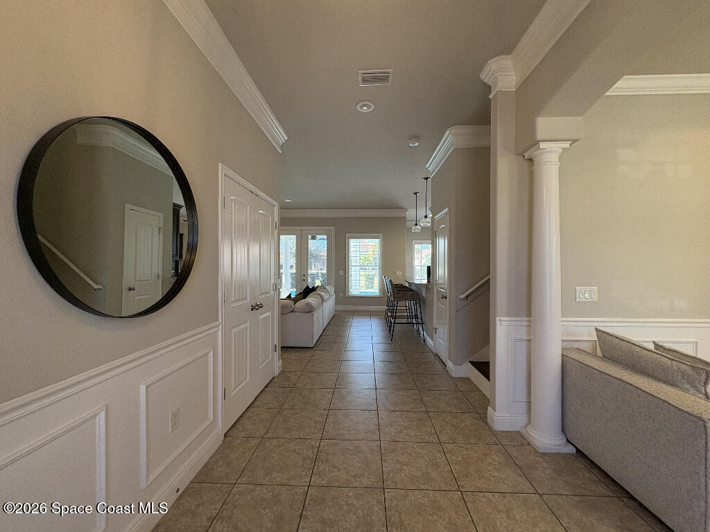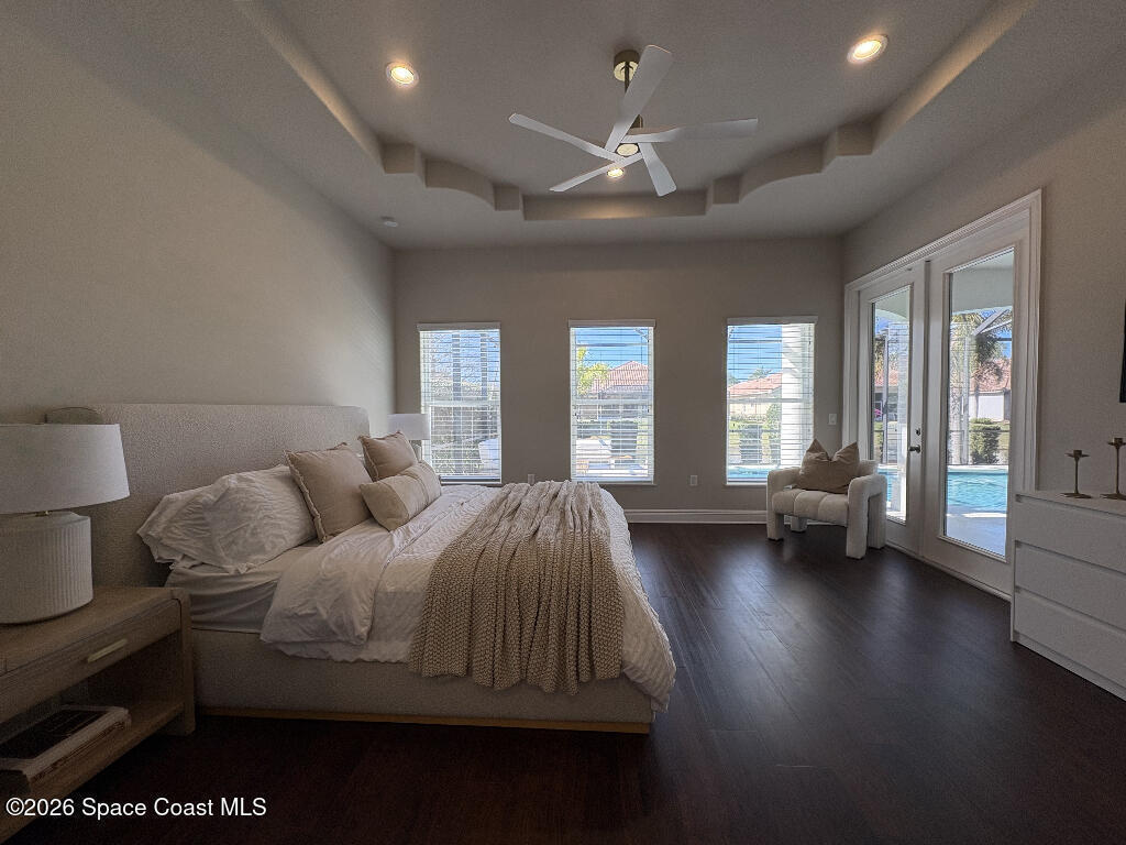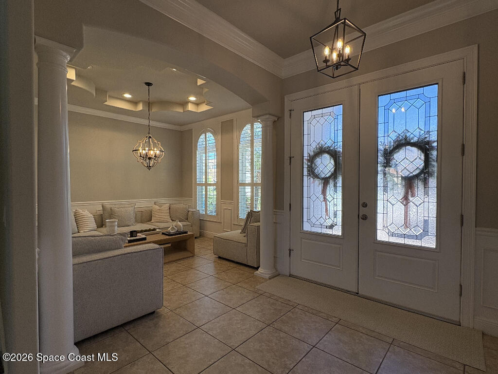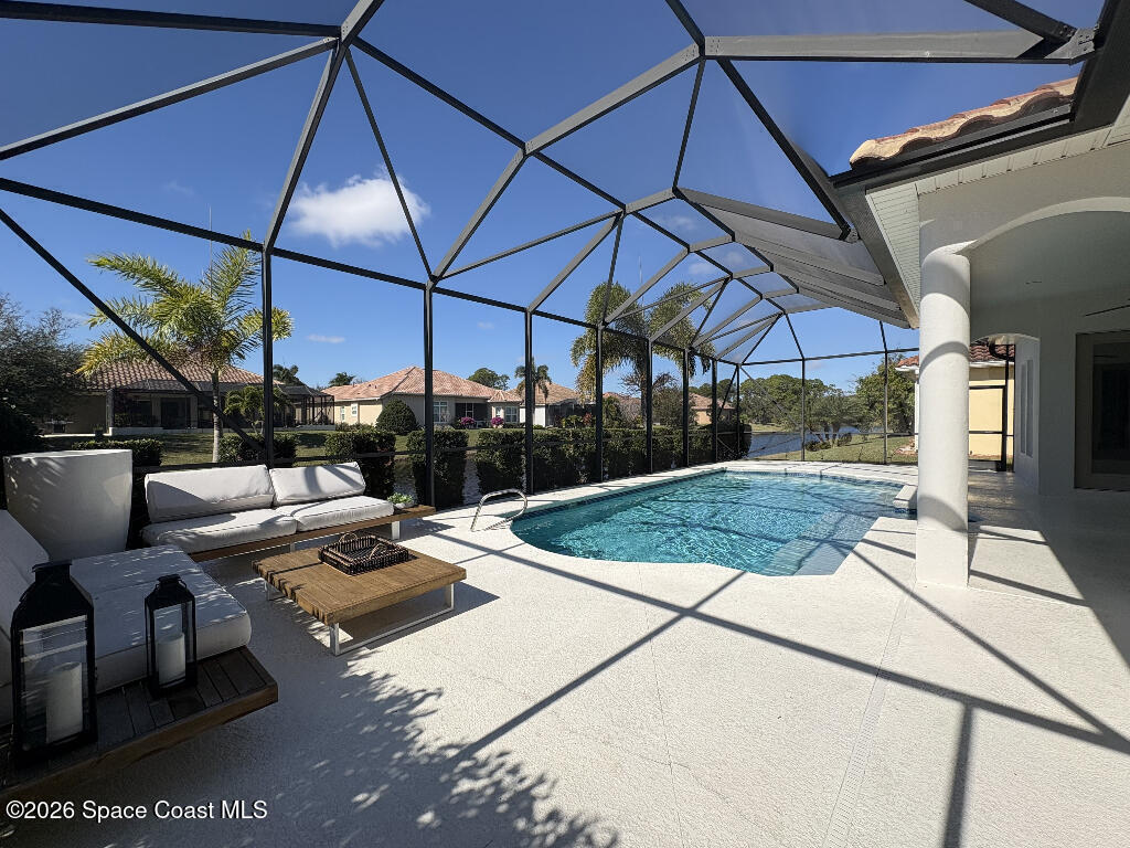Welcome to a one-of-a-kind European modern estate in the gated Tralee Bay Estates of sought-after Capron Ridge. This home features elegant wainscoting, arched columns, plantation shutters, and custom finishes throughout. The first floor offers an expansive chef's kitchen and formal dining room with butler's pantry overlooking the lake and pool with stunning sunsets. The primary suite includes vaulted ceilings, lake views, dual walk-in closets, and a spa-inspired bath. A secondary first-floor en-suite provides flexibility for guests. Upstairs, two oversized bedrooms connect to a small loft ideal for a home office and share a renovated bath. Updates include renovated bathrooms, recessed lighting, fresh interior and exterior paint, and a new AC. Built with full concrete block construction on both stories with impact windows on the front and entire second story. Generator included, oversized 3-car garage, and screened lakefront pool.