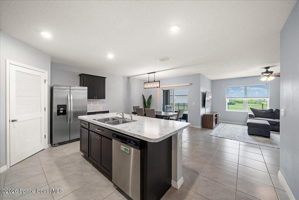Welcome home to peaceful living on a quiet dead-end street in the heart of Rockledge. This beautifully designed 4-bed, 2-bath home offers an open-concept layout perfect for gathering with family and friends, featuring a spacious kitchen with an oversized island that flows effortlessly into the dining and living areas. The private owner's suite is a relaxing retreat with a walk-in closet, double vanity, and walk-in shower. Modern upgrades throughout make this home truly move-in ready, including stainless steel appliances, smart home features, window blinds, and an electric vehicle charger for today's lifestyle. Enjoy morning coffee or evening sunsets from the screened-in back porch overlooking a serene waterfront, while the fully fenced backyard provides the perfect space for kids, pets, or outdoor entertainment. Conveniently located near schools, shopping, and dining, this home is ideal for families or professionals looking for comfort, convenience, and a place to truly unwind.