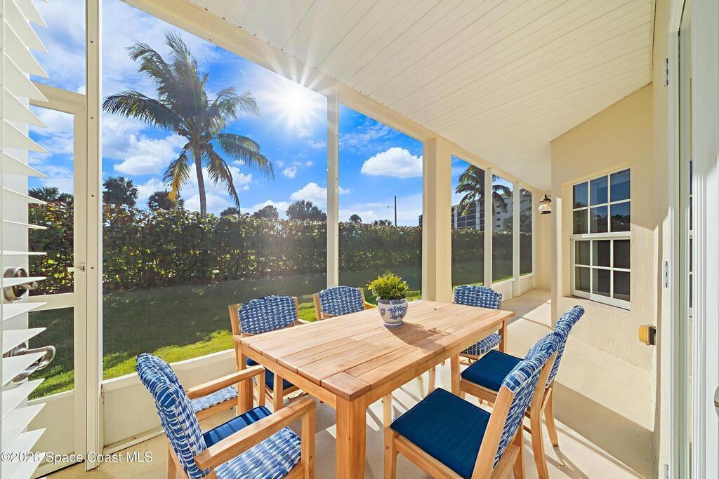 Spacious beachside unit with Mediterranean architectural influence, featuring two bedrooms and two baths and one of the larger floor plans available in the community--offering strong value for the square footage. The open layout with high ceilings is paired with granite countertops and stainless steel appliances, creating a modern and functional kitchen suitable for everyday living and entertaining. Travertine tile extends through the main living areas and wet spaces, with carpeted bedrooms for added comfort. Additional features include indoor laundry, a screened rear balcony, and an open front balcony. Community amenities include a pool, clubhouse, fitness center, and tennis/pickleball court. Public beach access is within walking distance at the end of Palm Springs Blvd, with convenient proximity to shopping, dining, and a gym.