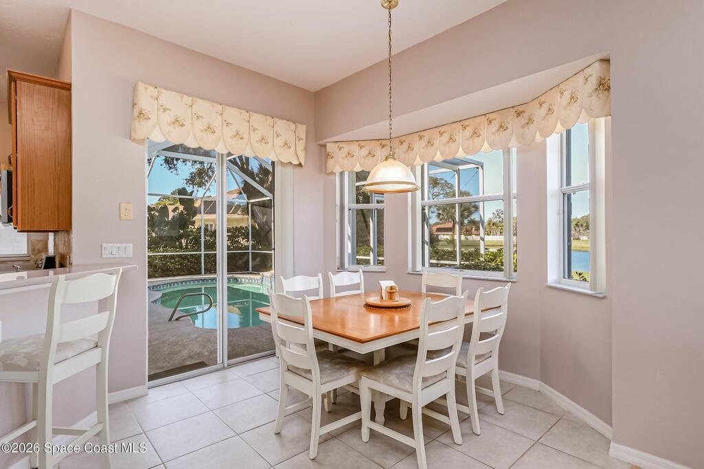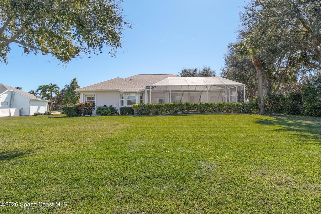 4 bed, 2.5 bath, one owner, pool home resting on a peaceful lake in River Grove on the Trail - a quiet and tranquil community with meandering walkways, lakes, and a fishing pier on the Indian River. Spacious living areas, a comfortable floorplan, Accordian shutters, heated pool, covered lanai, outside shower, pool bath, and large private lot - just some of the features that will check off your wish list. Lakefront views from inside and out. Convenient South Merritt Island location close to shopping, downtown Cocoa Village, and the beaches.