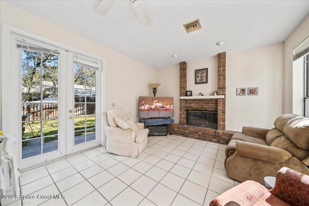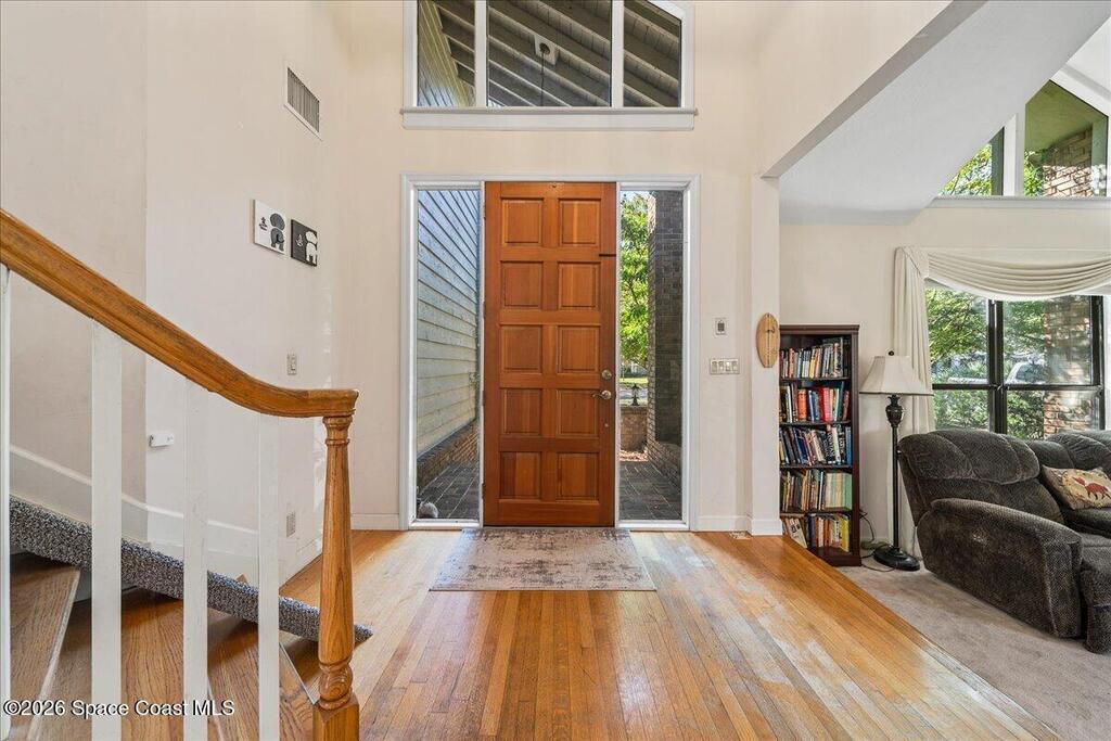 Step back in time to oak tree lined streets, sidewalk bike rides, and friendly conversations at the mailbox in the Sanctuary of Indialantic. This highly sought after guard gated community offers timeless charm and exceptional livability. The home showcases original, oak hardwood floors and solid oak cabinetry reflecting craftsmanship rarely found today, Soaring ceilings in the entryway, formal living room and dining room are accentuated by multiple tiers of windows that flood the home with natural light. Numerous French doors open to both the back and side decks creating seamless indoor/outdoor living and overlooking the generous backyard. The spacious kitchen features an eat in bay window, large center island, and pantry and opens to the adjoining family room with a classic brick fireplace. A first floor bedroom and full bath provide flexibility for multigenerational living. A large laundry room, oversized two car garage and abundant storage closets complete the main level.