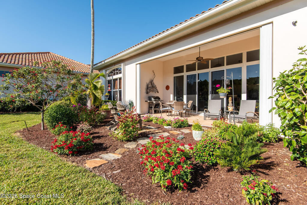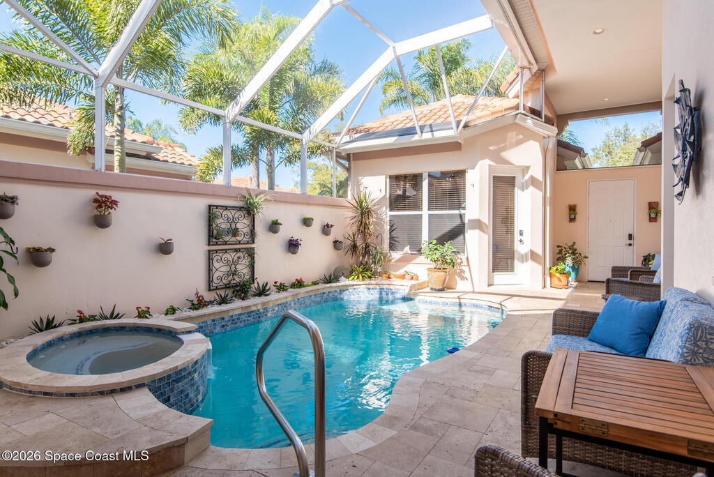 Spectacular courtyard home with astonishing updates. This 3 bedroom 3 bath 2,127 square feet under air residence features a delightfully remodeled kitchen with open floor plan. Large living room opens to private backyard/preserve and to a huge master suite. Heated pool/spa recently resurfaced, newer pool pump, travertine floor around pool/patio area. Separate guest cabana add to the appeal. Astounding landscaping all around the property. Come and enjoy the amazing Grand Harbor lifestyle. Immaculate home gently used by owners. Only few minutes to greatest beaches. Lovely community pool as well on St Philips. Grand Harbor amenities with membership. Survey and complete floor plan available per request.