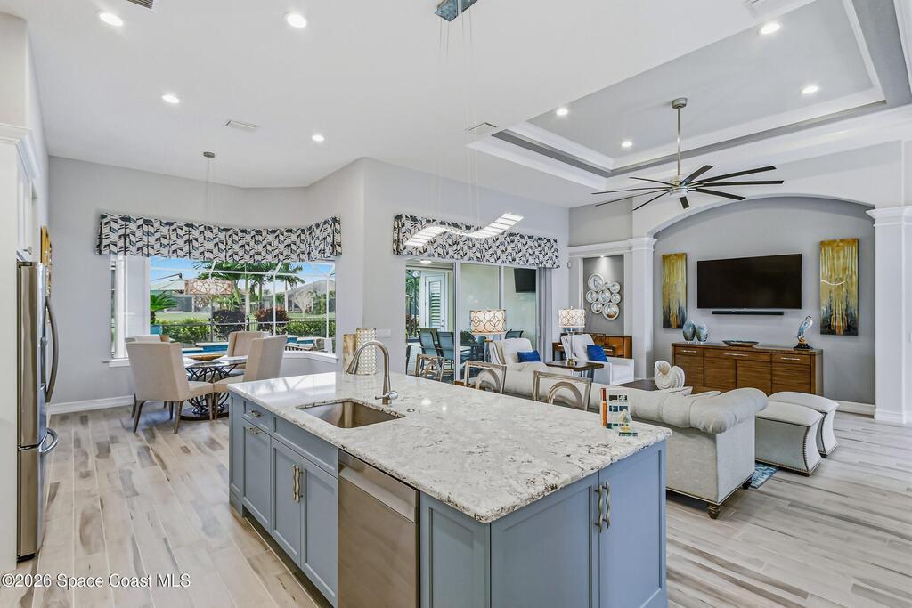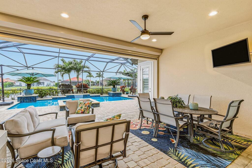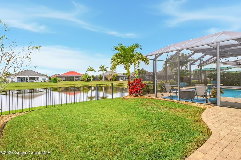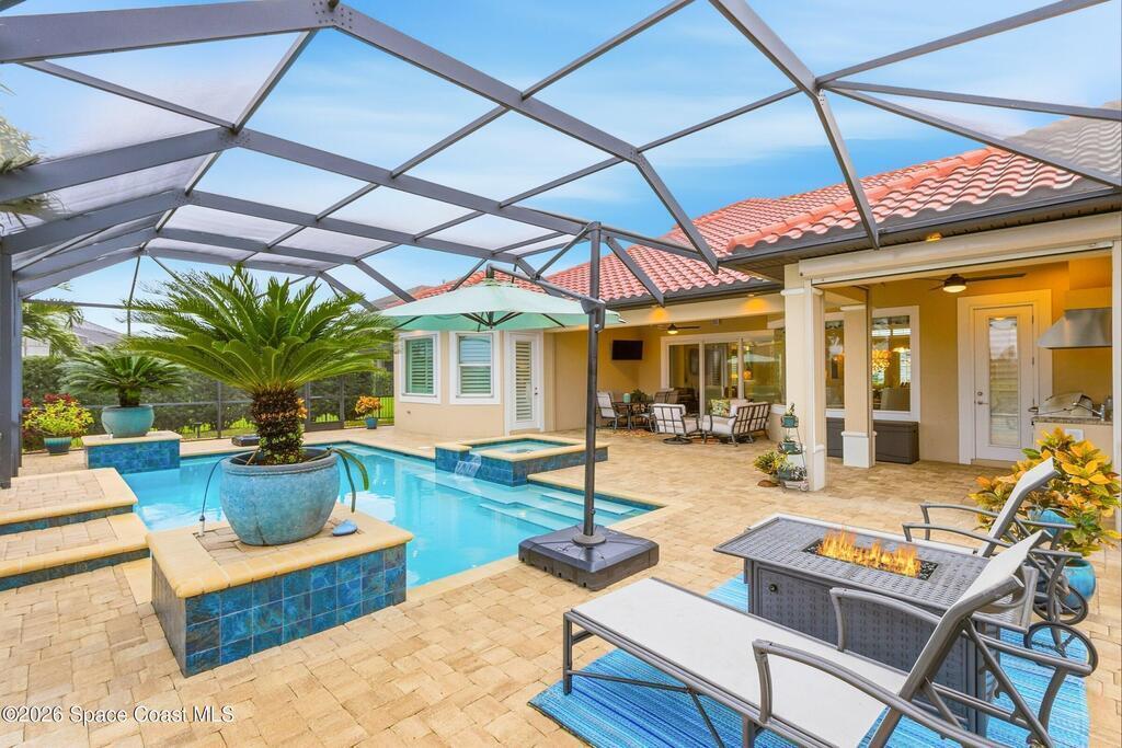 Welcome to this 4bdr, 3ba resort-style home built in 2019 where every day feels like a staycation. Tall 11ʹ ceilings with 13ʹ tray accents, tile throughout the main living areas, and a fresh neutral palette create a light, bright, and relaxed vibe. The kitchen shines with quartz counters, a 10ʹ island, gas cook-top, and walk-in pantry- ideal for hosting your favorite people! Out back, take in the lake view surrounded by lush, tropical landscaping, a heated pool with waterfall, spa, outdoor kitchen, and paver deck- perfect for enjoying sunset cocktails, or simply relaxing. Smart-home features, security system, Culligan water filtration, recirculating hot water, fenced yard, termite bond, and storm protection for peace of mind. Coveted 3-car garage with epoxy floor for extra storage. Small gated community with full access to Addison Village Clubhouse amenities, plus A-rated schools, shopping, and easy access to I-95. If you're ready for destination living..schedule your tour TODAY!