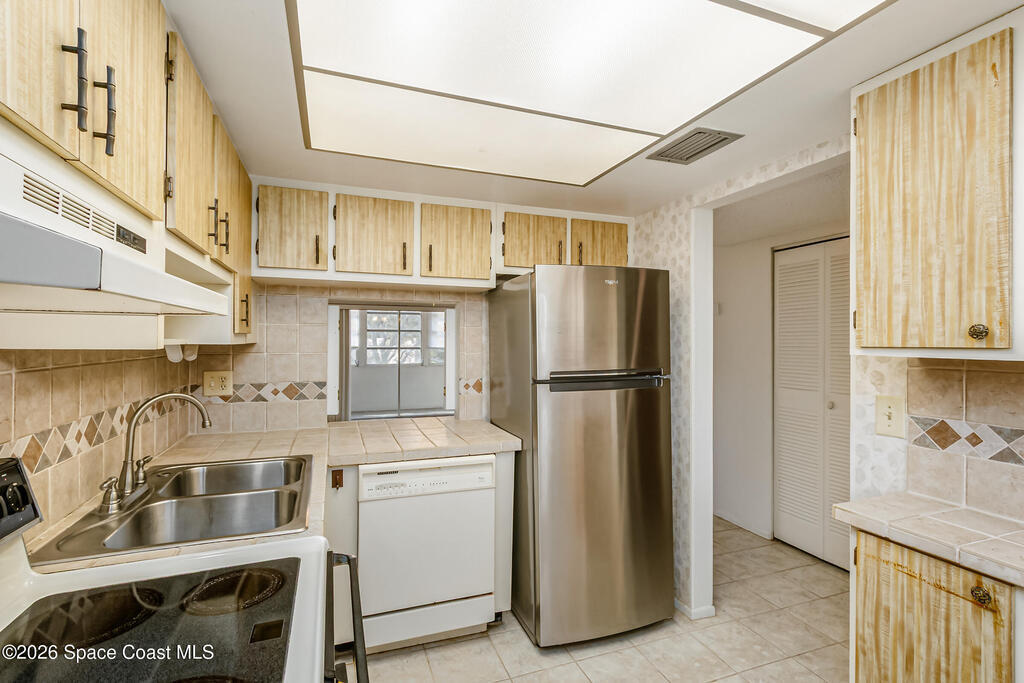 This condo is located on US1, in Melbourne along the Indian river. 55+ community. This adorable home offers 1 bed, 1 1/2 baths with HURRICANE shutters, near pool. Clean 75% tile & move in ready. Bedroom has 2 closets, and tile shower with seats. Kitchen has a small nook for table and ceramic tile countertops with a pass thru to the living room. Sliders in L/R lead to a glass room with roll out windows, also has HURRICANE shutters. Stackable washer & dryer. Beautiful pool to relax and enjoy. A few miles from downtown Eau Gallie Arts District, great restaurants, and bridge to beaches. Condo fees include Cable, public sewer, trash and water. No dogs permitted.