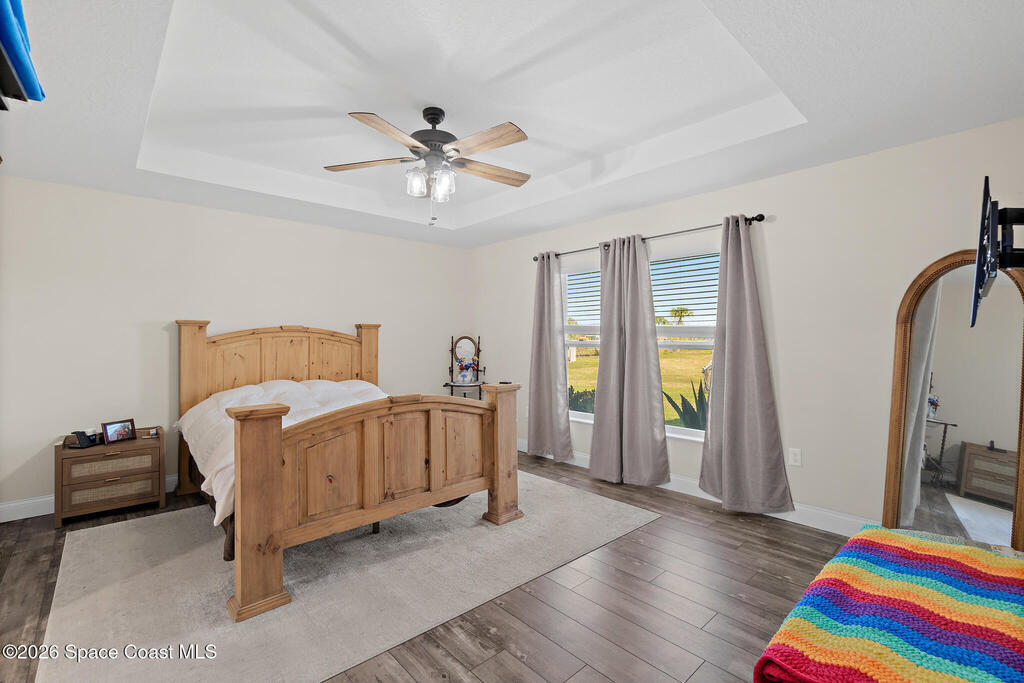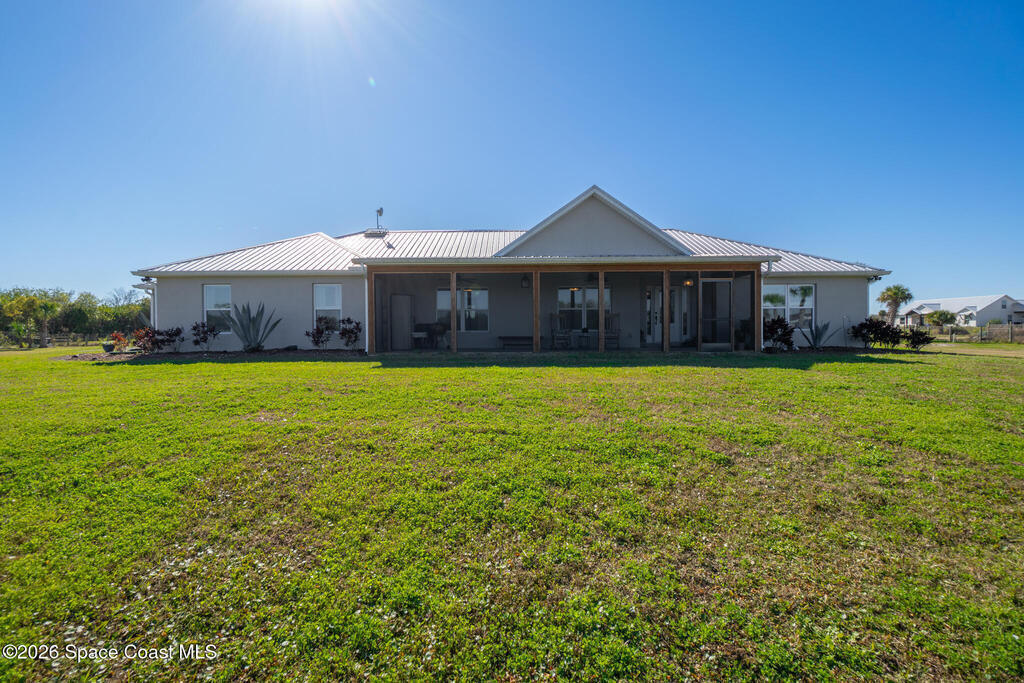 This 2020-built, 4-bed, 2-bath home sits on 3.18 tranquil acres! Enter through the automatic gate into your fully-fenced paradise featuring luxury vinyl plank flooring and an open floor plan. The chef's kitchen showcases an island with built-in microwave drawer, pantry, coffee bar, and dual reverse osmosis systems for purified water. The flex room includes built-in shelving and Murphy bed--perfect for guests or a home office. The primary offers his and hers walk-in closets, dual vanities, and an oversized shower. A metal roof and energy-efficient impact-resistant doors and windows ensure lasting comfort and peace of mind. Outside, enjoy painted porches overlooking your stocked fishing pond with dock. Separate irrigation for year-round gardening, and a utility shed with internal water system enable true homestead living. A 2-car epoxy-floored garage and a carport provides plenty of covered parking for your RV or boat. Don't miss out on your dream retreat!