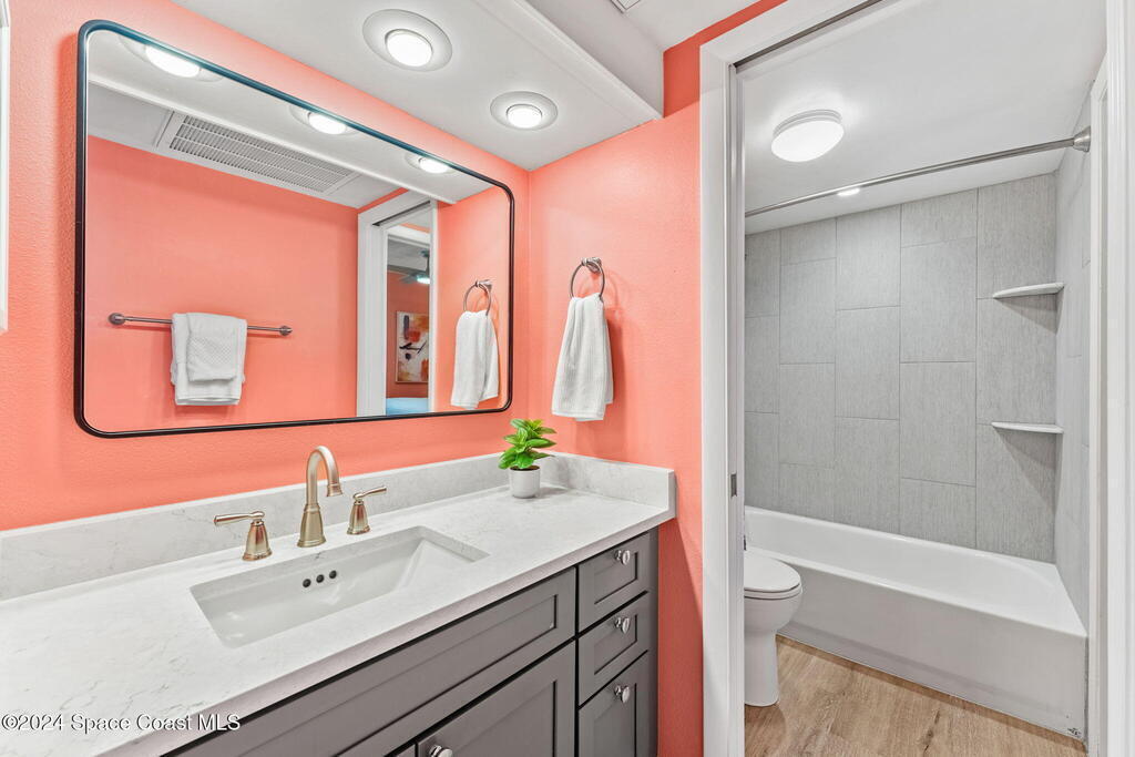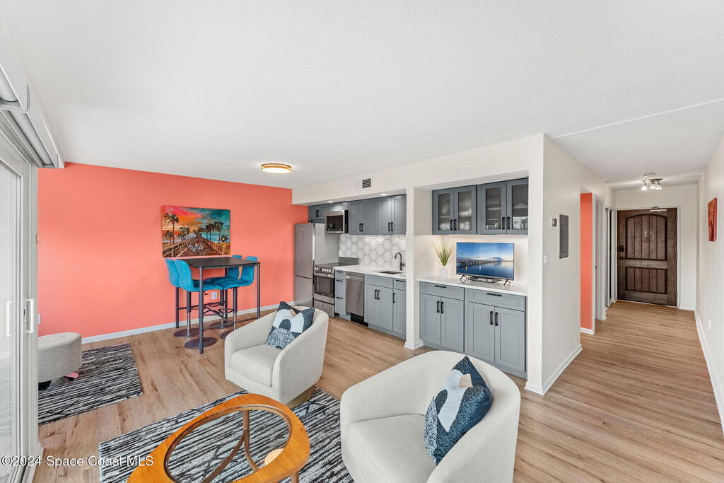 Experience waterfront living in this fully renovated 1-bed, 1-bath marina condo w/ breathtaking Melbourne Harbor views & unparalleled access to both convenience & adventure. Located steps from downtown Melbourne, this Airbnb-friendly retreat boasts 2023-installed PGT WINGUARD impact sliding doors and windows for safety & sophistication. The kitchen features high-end ''city-size'' GE appliances, a Kraus gunmetal sink, Cambria countertops, solid wood cabinets w/ rollout drawers, & glass-front displays. The bathroom offers Cambria counters, new fixtures, a pocket door for private bedroom access, & a new tub/shower area w/ built-in shelves. Thoughtful upgrades include Hunter Douglas solar shades, updated USB/USB-C outlets, & vinyl plank floors. Boaters will love the deep water access from Melbourne Harbor Marina to the ocean, just 16 miles from Sebastian Inlet, while the condo's location, only 30 miles from Port Canaveral, makes it perfect for cruise enthusiasts.