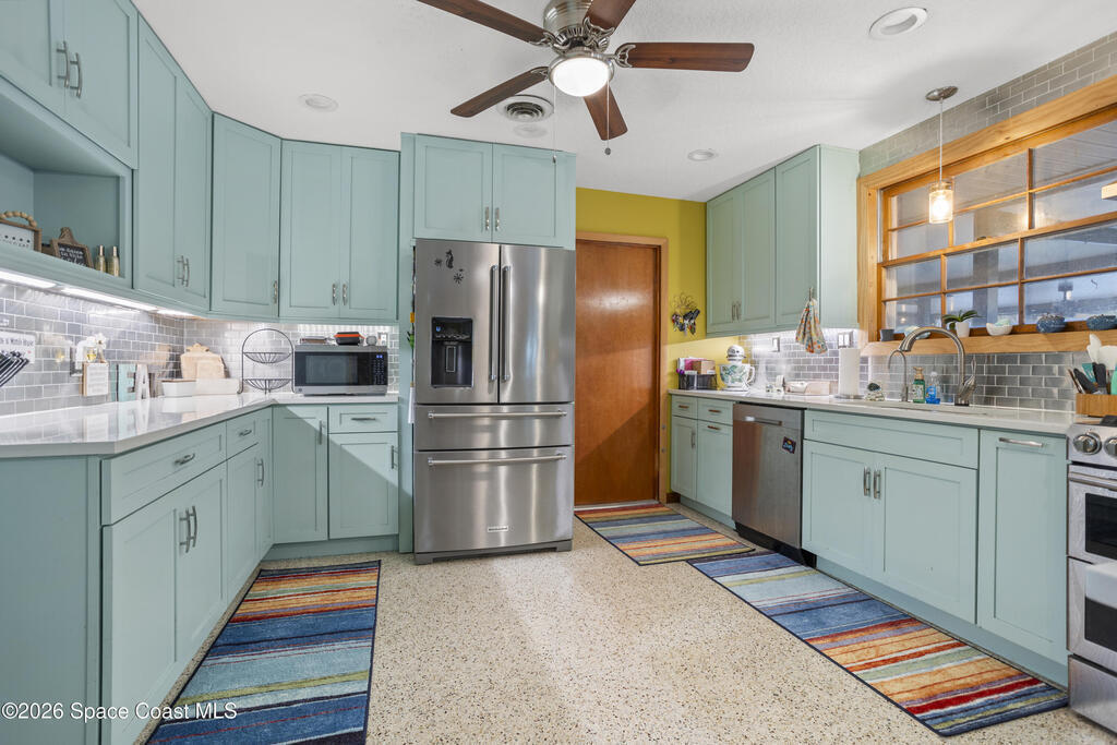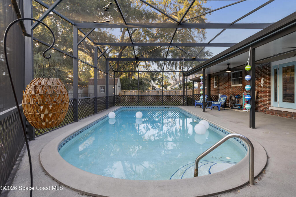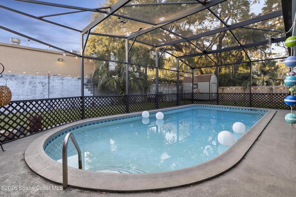 MOTIVATED SELLER! Substantial price improvement. Welcome home to this modern contemporary retreat just steps from the Indian River. Designed for effortless living and unforgettable entertaining, this home features a 2024 roof, A/C 2022, updated plumbing, a new well and pump, and a whole-home on-demand generator. Also, new clear hurricane shutters and aluminum pre-wired loft shed. Also a newer concrete slab for your camper with 30 amp service available. Beautiful terrazzo floor throughout the home. The kitchen shines with designer cabinets, quartz countertops, and a natural gas stove, and the primary suite is enhanced with a mini split system.Outdoors is the true showstopper--a very large pool area built for entertaining, complete with ambient lighting. Enjoy a huge screened-in back porch, paver deck, artificial turf, sodded front yard, new shed, and RV pad with water and electric. Pool upgrades include a new filter tank and salt cell. This is Florida living at its finest