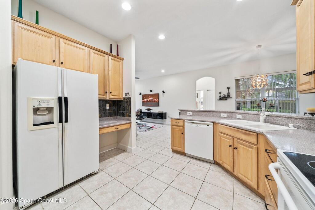 Beautiful 4 bedroom, 3 full bath, 3-car garage home located in the fabulous gated 55+ community of Heritage Isles. This light and bright home features high ceilings and tile flooring throughout the main living areas. The open kitchen with solid-surface countertops overlooks the spacious family room and breakfast nook, perfect for everyday living and entertaining. Enjoy the super Florida room, ideal for relaxing or hosting guests. The primary suite offers sliders to the Florida room, two walk-in closets, and a private bath with double vanities, garden tub, and separate shower. Split bedroom floor plan provides excellent privacy. Convenient indoor laundry room. The oversized garage includes screens, making it great for hobbies or enjoying the breeze. Community amenities include a pool, tennis courts, and a large community center with a wide variety of activities.
