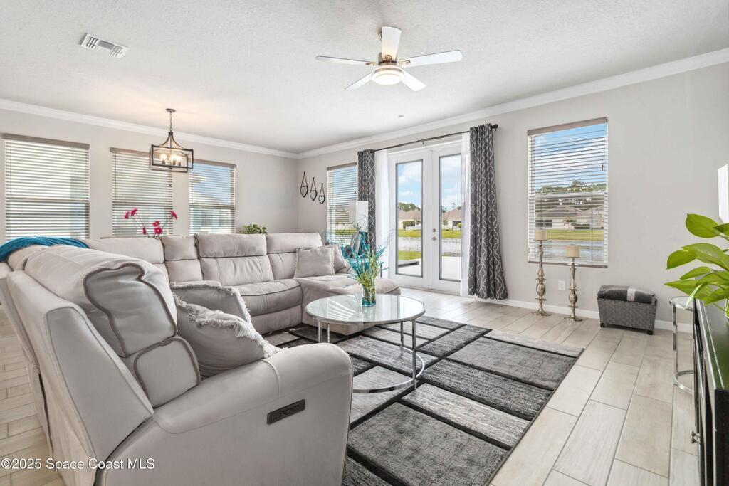 Beautiful 3-Bedroom 3 Bath Concrete Block Home with In-Law Suite & Lake Views in Bayridge! Welcome to this beautifully designed 2021-built concrete block home in the sought-after community of Bayridge! Featuring an open floor plan, this home offers 3 bedrooms, a home office that can be used as a 4th bedroom, and a private in-law suite with a kitchenette perfect for guests or multi-generational living.Enjoy the upgraded tile flooring throughout, a spacious kitchen with a large island, coffee bar, stainless steel appliances, and a double oven. The primary suite boasts French doors leading to the porch, a shower with double heads, and a walk-in closet with upgraded shelving. The family room features French doors opening to the expansive full-length patio, where you can take in the breathtaking lake views.