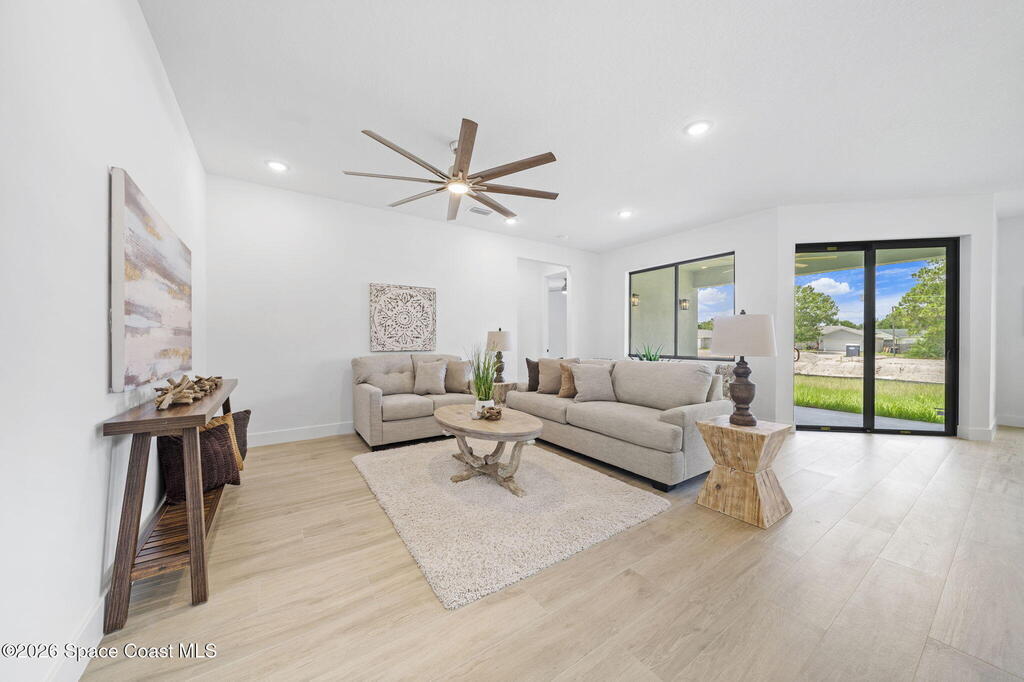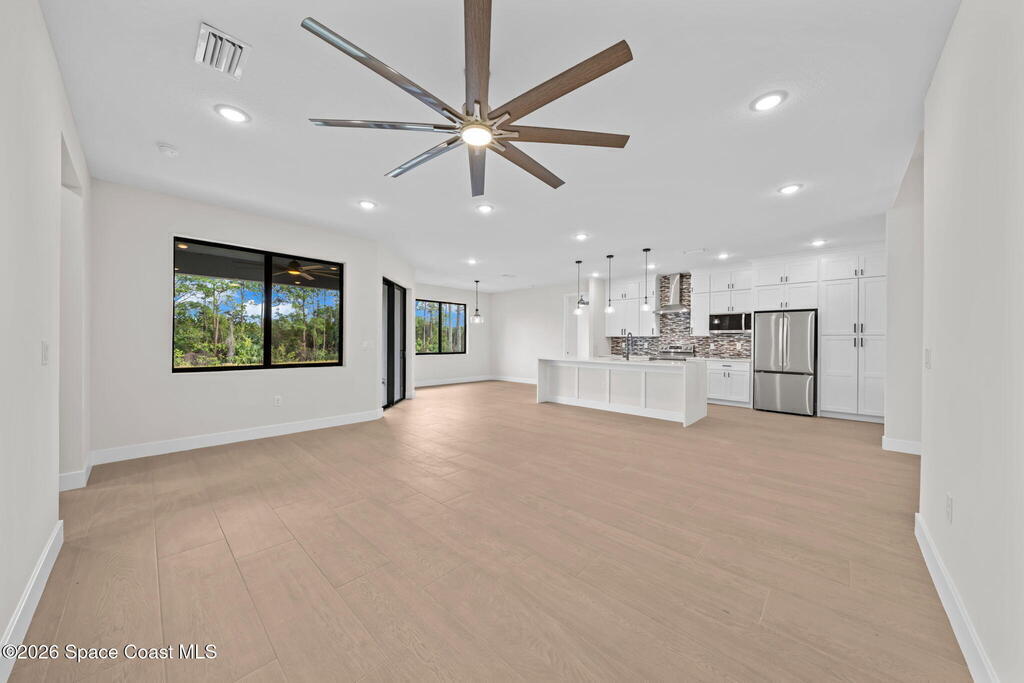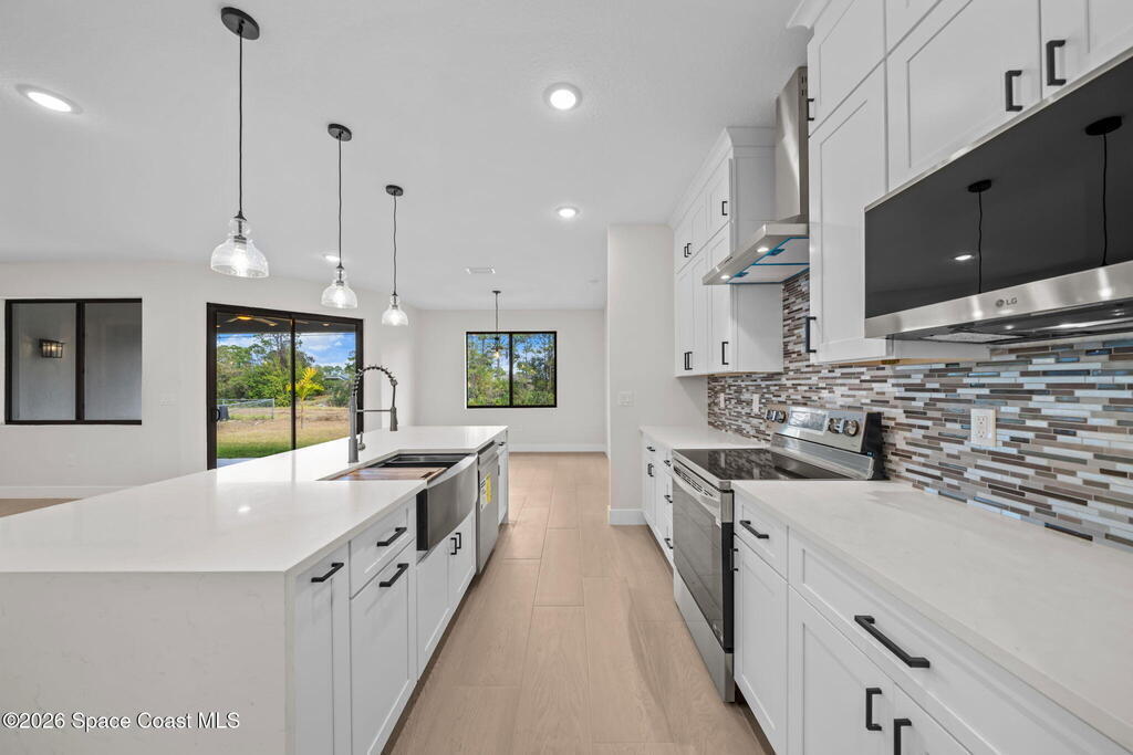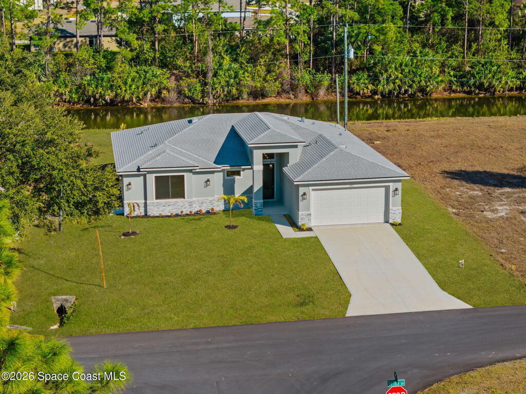 Luxury New Construction Home Featuring a Private Guest Suite and High-End Finishes; 4BR/3BA. Paid Closing Costs with builders preferred lender! Enjoy IMPACT windows & doors, wood-look porcelain tile throughout, soaring 9'4'' ceilings, and 8' interior doors. You will fall in love with the kitchen which features a waterfall quartz island, pendant lighting, ceiling-height soft-close cabinetry, pull-out spice rack & hidden trash bin, exterior vented hood and LG appliances. The spacious guest suite lives like a second primary with its own entrance, kitchenette, & full bath. The primary suite offers a spa-like retreat with a free standing tub, walk-in shower, dual vanities, and large walk-in closet. Entertain in the open living/dining area that flows to a covered patio pre-plumbed for a summer kitchen. The yard backs to a canal giving added privacy. Complete with fixtures, smart fans, smart garage door, water treatment system, laundry room w/ sink, and 1-year builder warranty.