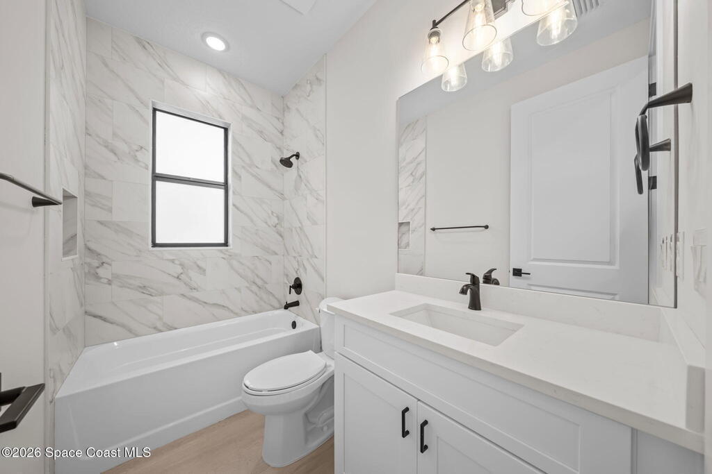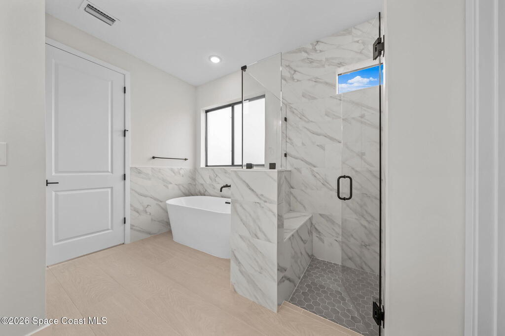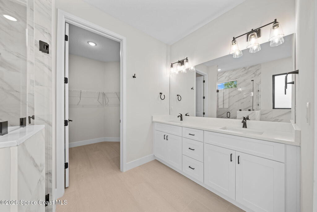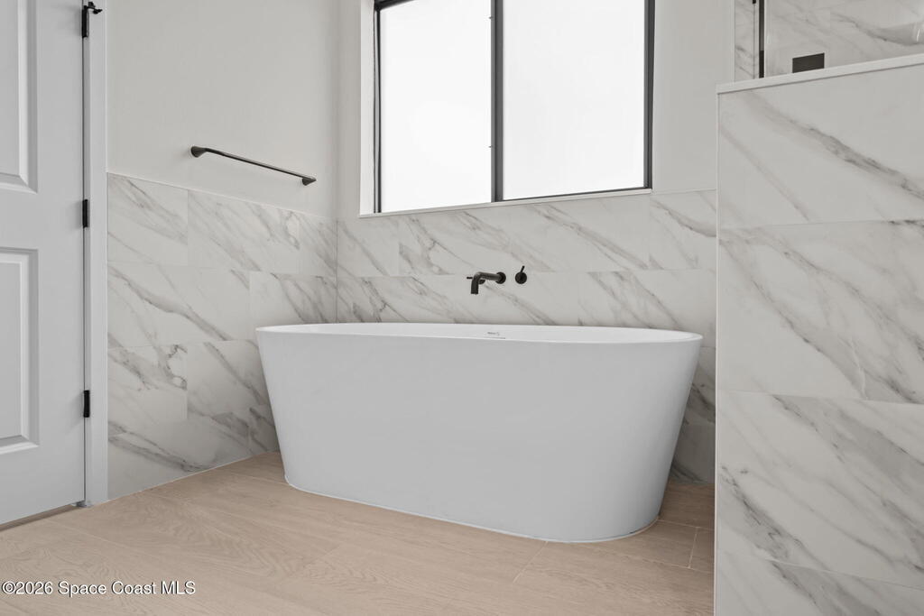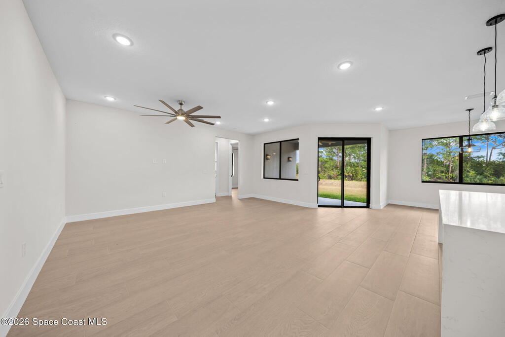 Luxury New Construction Home Featuring a Private Guest Suite and High-End Finishes; 4BR/3BA. Paid Closing Costs with builders preferred lender! Enjoy IMPACT windows & doors, wood-look porcelain tile throughout, soaring 9'4'' ceilings, and 8' interior doors. You will fall in love with the kitchen which features a waterfall quartz island, pendant lighting, ceiling-height soft-close cabinetry, pull-out spice rack & hidden trash bin, exterior vented hood and LG appliances. The spacious guest suite lives like a second primary with its own entrance, kitchenette, & full bath. The primary suite offers a spa-like retreat with a free standing tub, walk-in shower, dual vanities, and large walk-in closet. Entertain in the open living/dining area that flows to a covered patio pre-plumbed for a summer kitchen. The yard backs to a canal giving added privacy. Complete with fixtures, smart fans, smart garage door, water treatment system, laundry room w/ sink, and 1-year builder warranty.